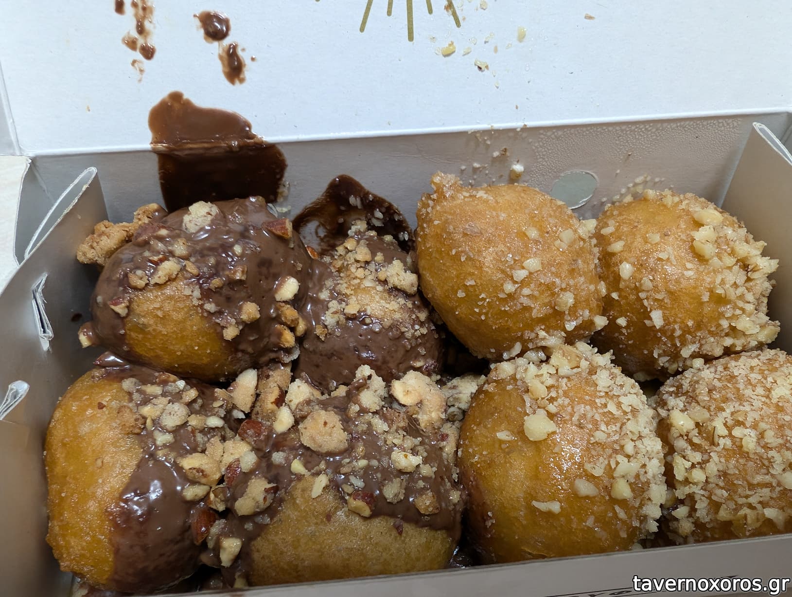 Στήθηκα στην ουρά με υπομονή και πήρα μια 12άδα με μέλι-καρύδι-κανέλα στα 6 ευρώ. Ήταν καλοί, αλλά όχι σπουδαίοι.