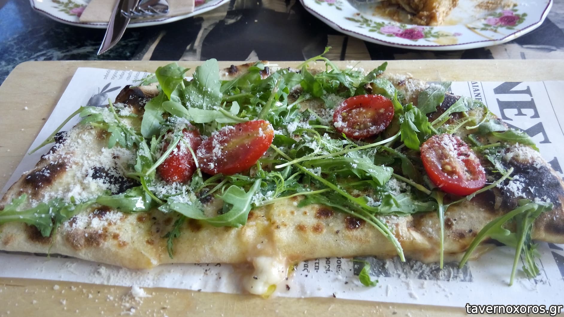 Piadina με μoτσαρέλα, pecorino, παρμεζάνα και prosciutto di parma