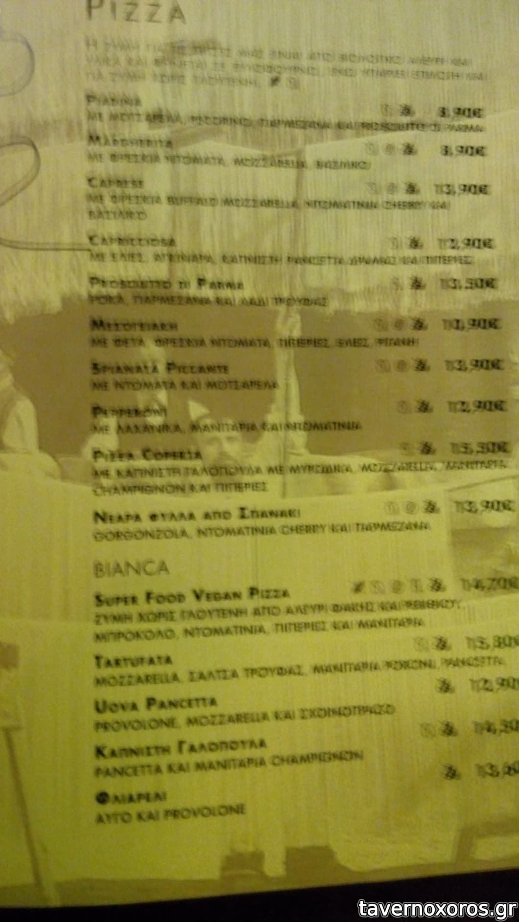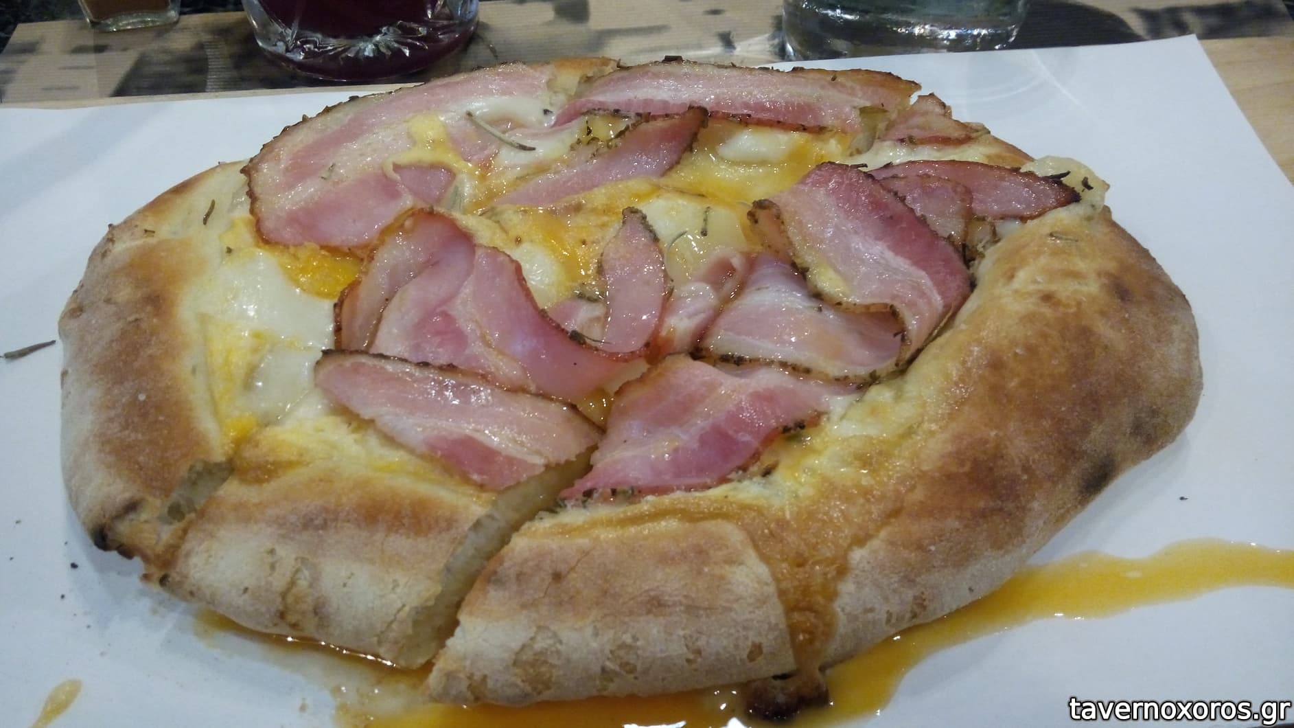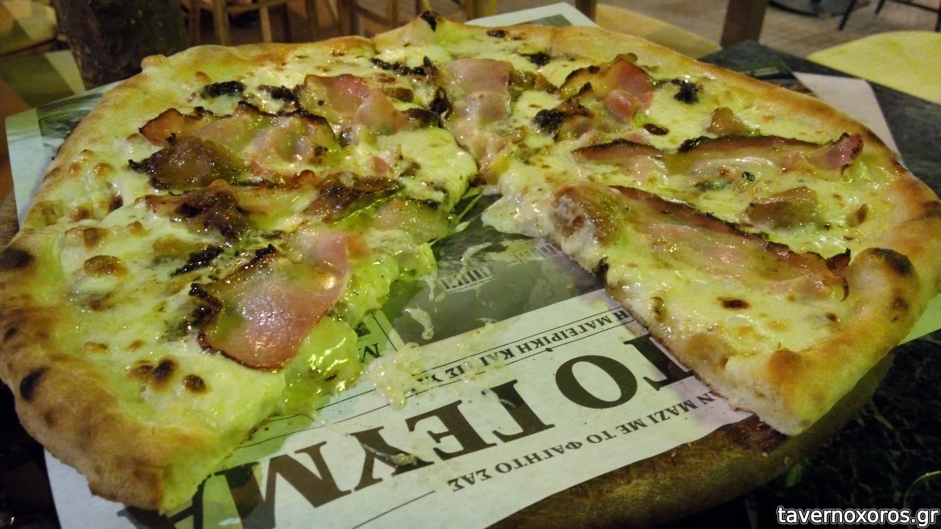 Pizza tartufata με mozzarella, taleggio, πανσέτα και μανιτάρια porcini (πολύ καλή)