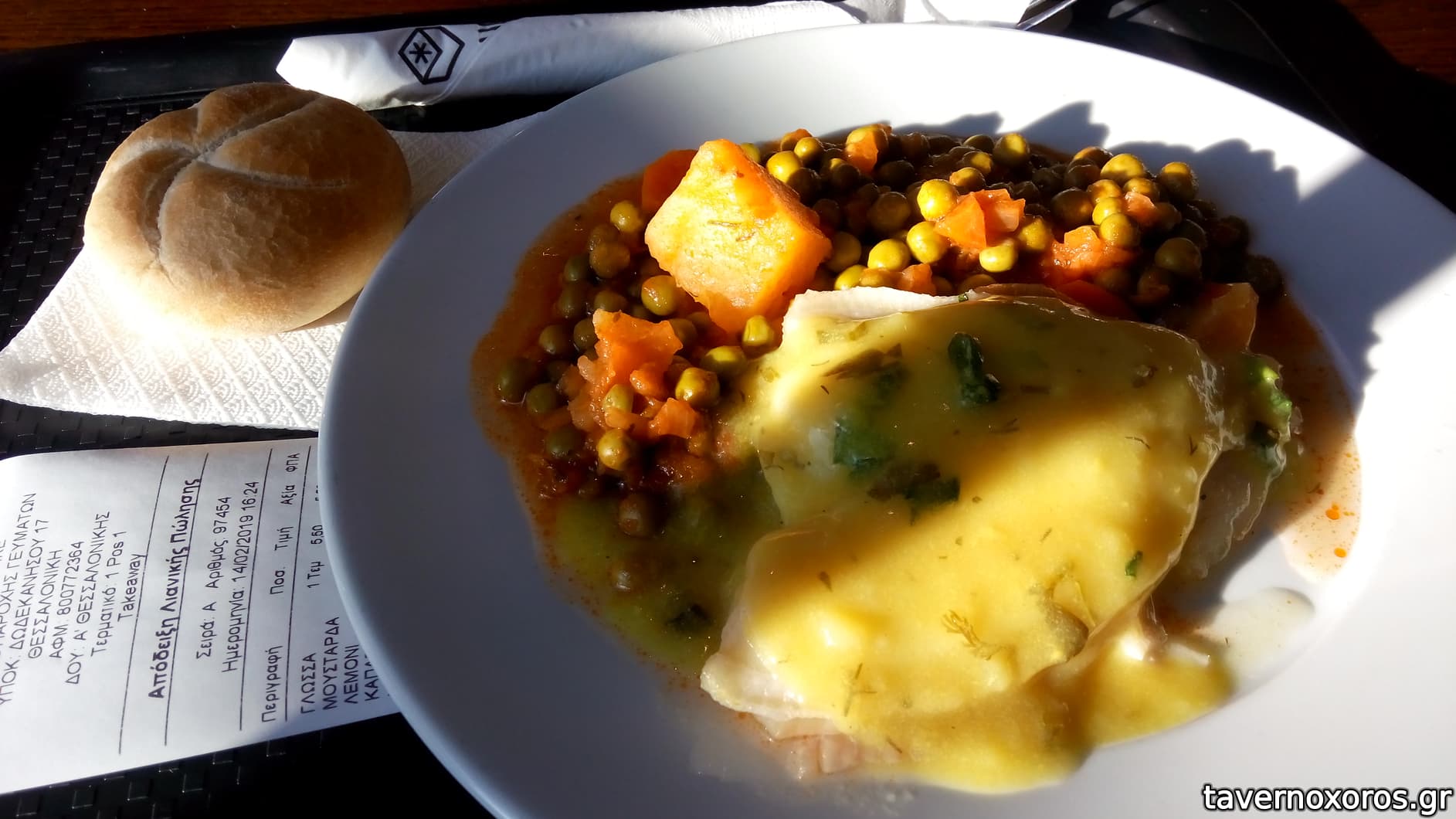 Γλώσσα με σως μουστάρδας και αρακά