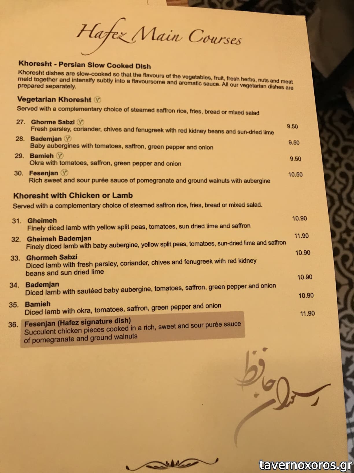 Fesenjan (κοτόπουλο με πουρέ ροδιού και καρυδιού)