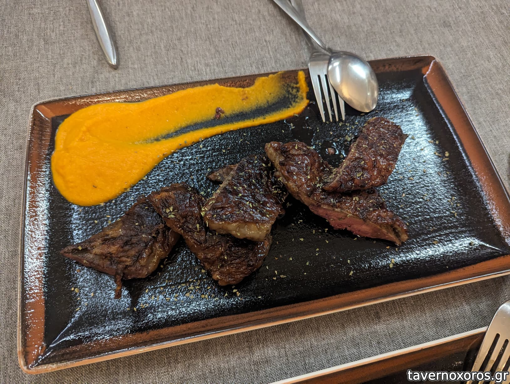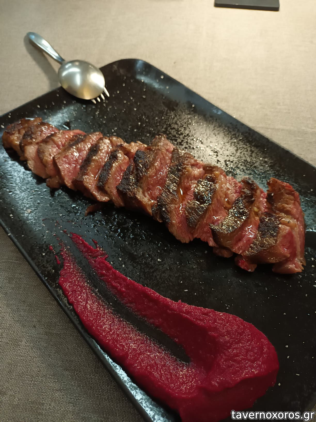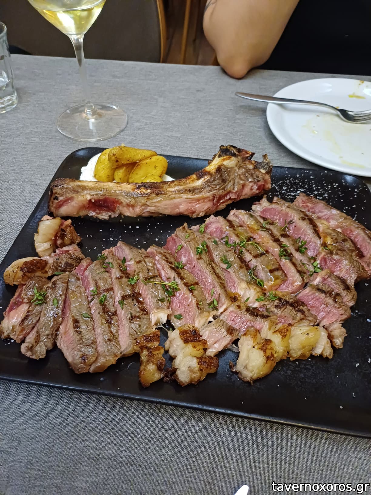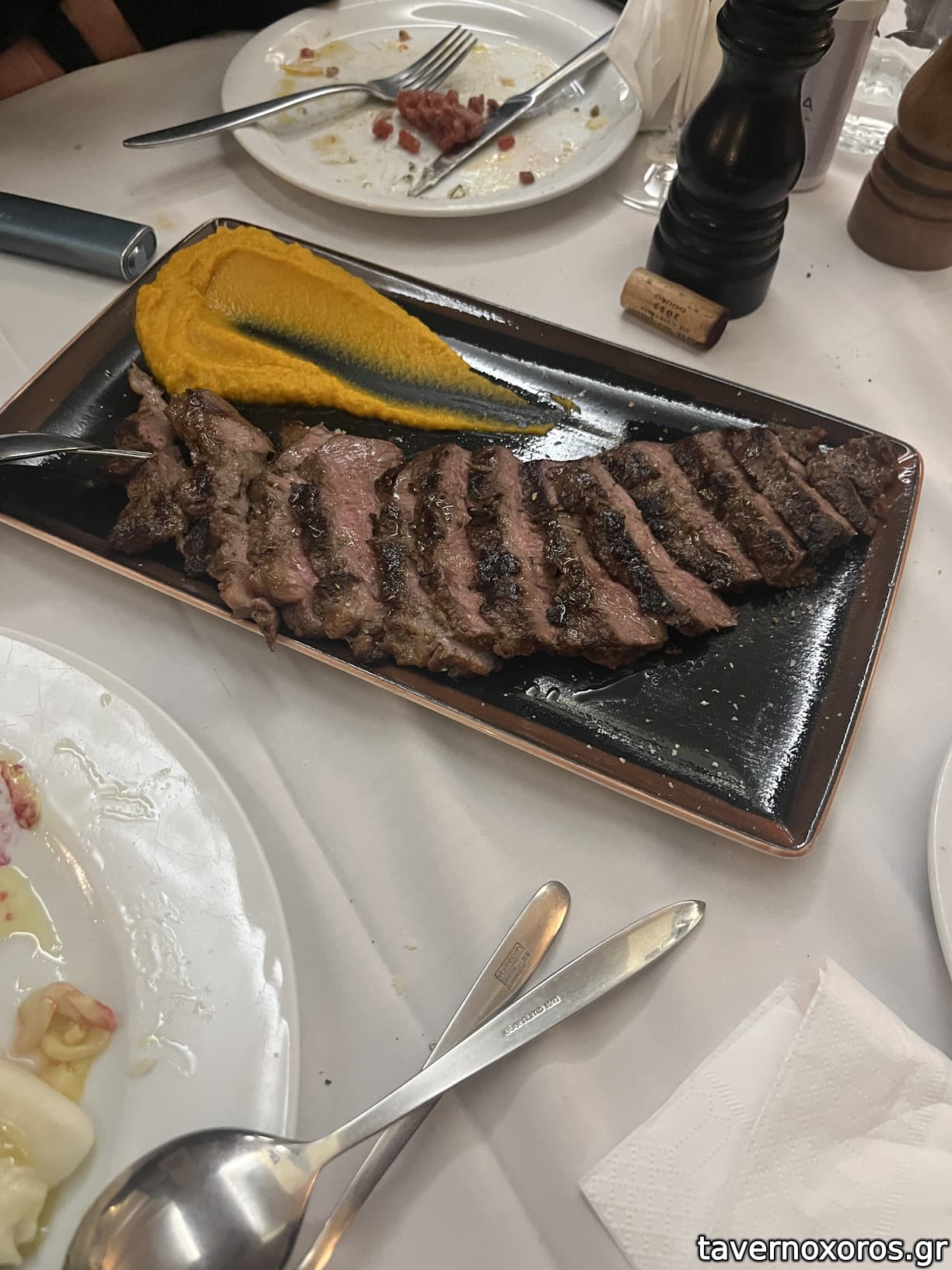 - Ribeuy black Angues prime USA (42E η μερίδα) πάρα πολύ νόστιμη και καλά ψημμένη. Ήταν η αποκορύφωση. Επίλεξα να μην βάλουν λάδι τρούφας μετά από σχόλια άλλων ταβερνοχωρίτων.