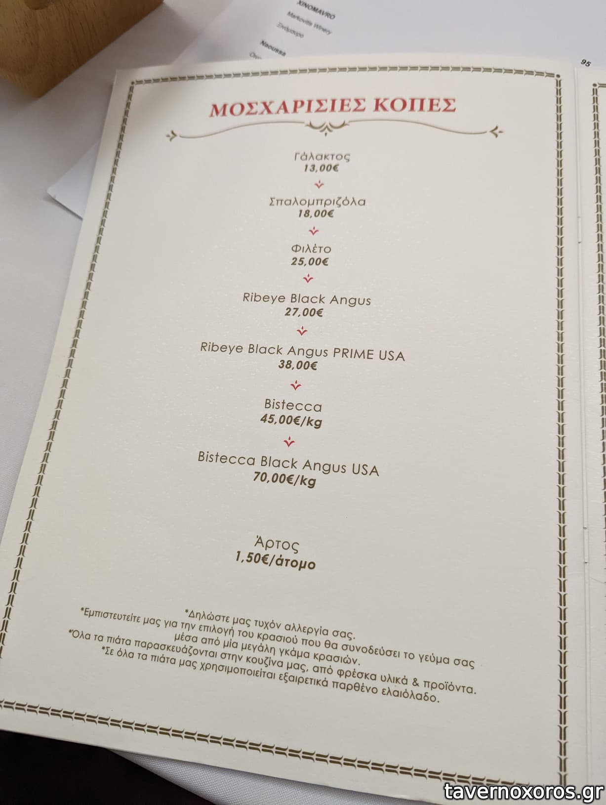 Κοπές μόνο άνω του ενάμιση κιλού το κάθε κομμάτι. Ουσιαστικά αποκλείουν κάποιον που θέλει να φάει κοπή μόνος από το να το κάνει, καθώς τα κομμάτια είναι μεγάλα.