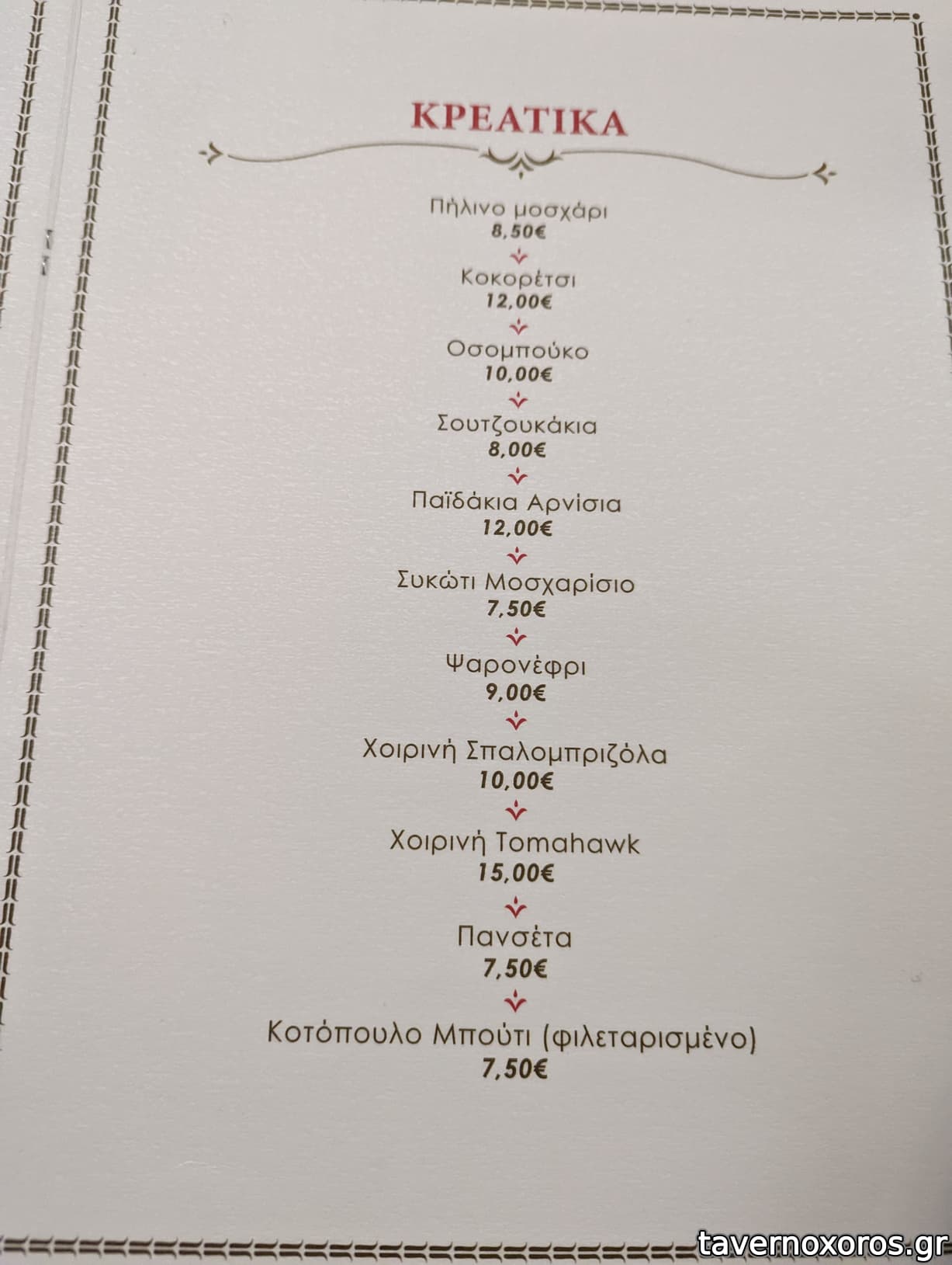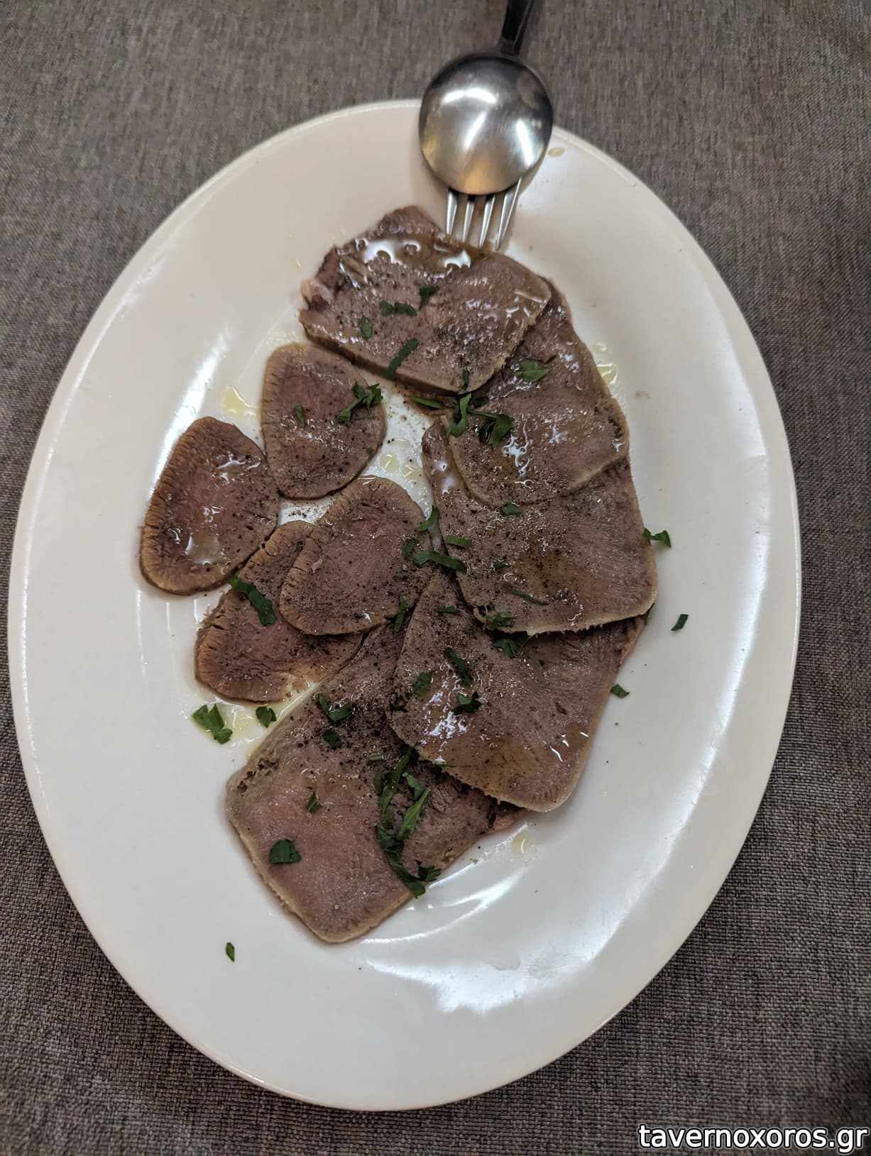 - Μοσχαρίσια γλώσσα: Σερβιρισμένη με λαδολέμενο, πολύ νόστιμη.