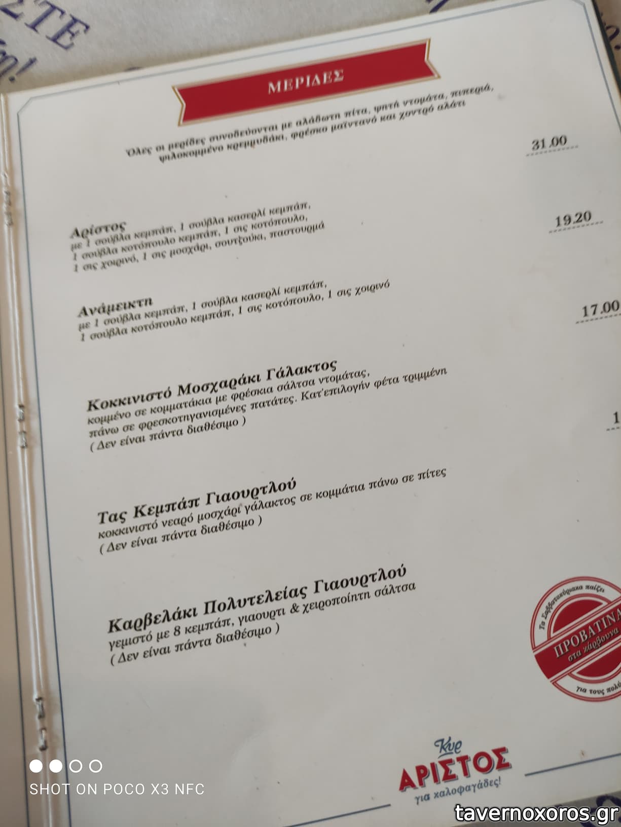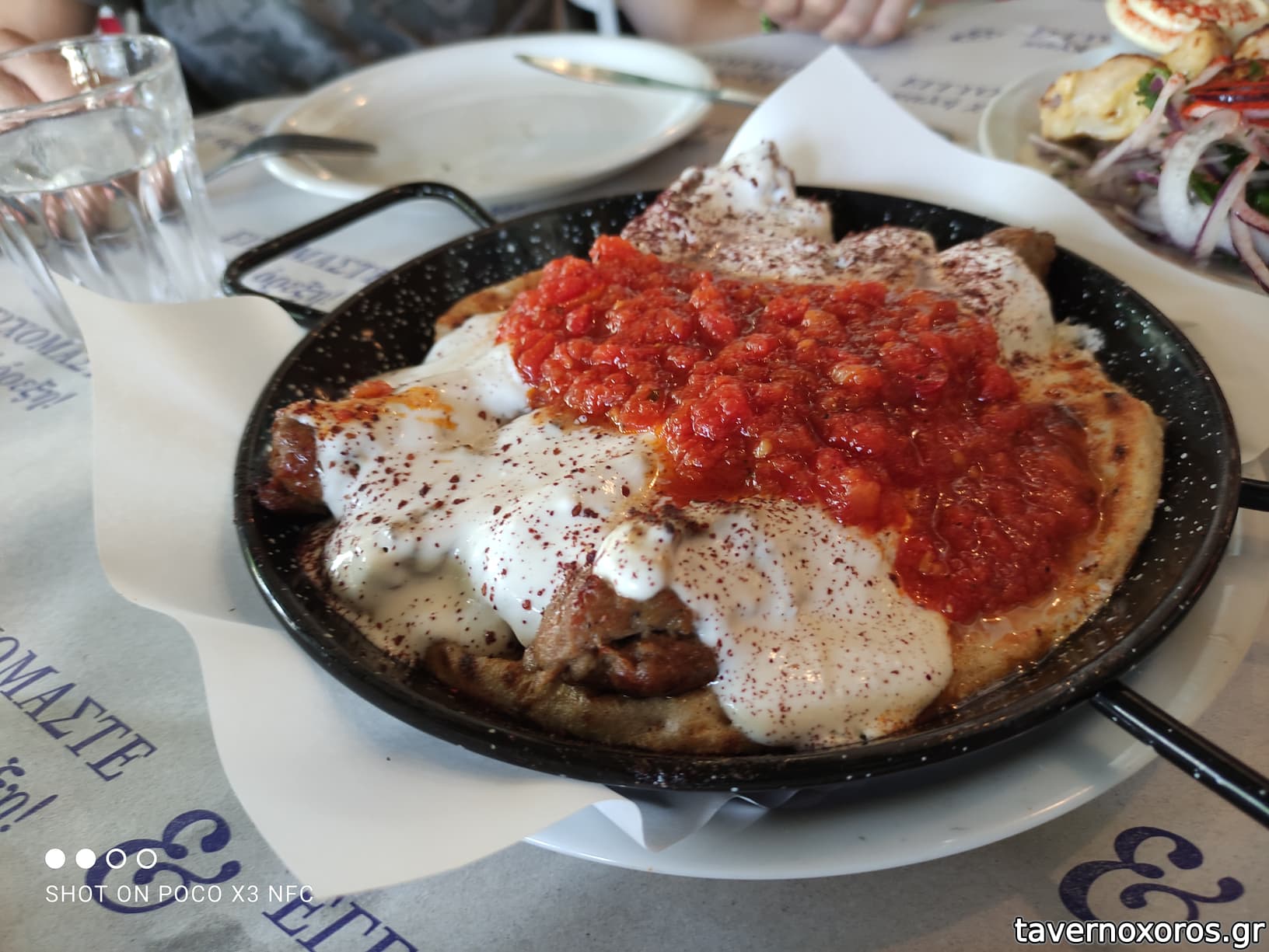 Παστουρμαδόπιτα (κακή), γιαούρτι (αρκετά κομπλέ)