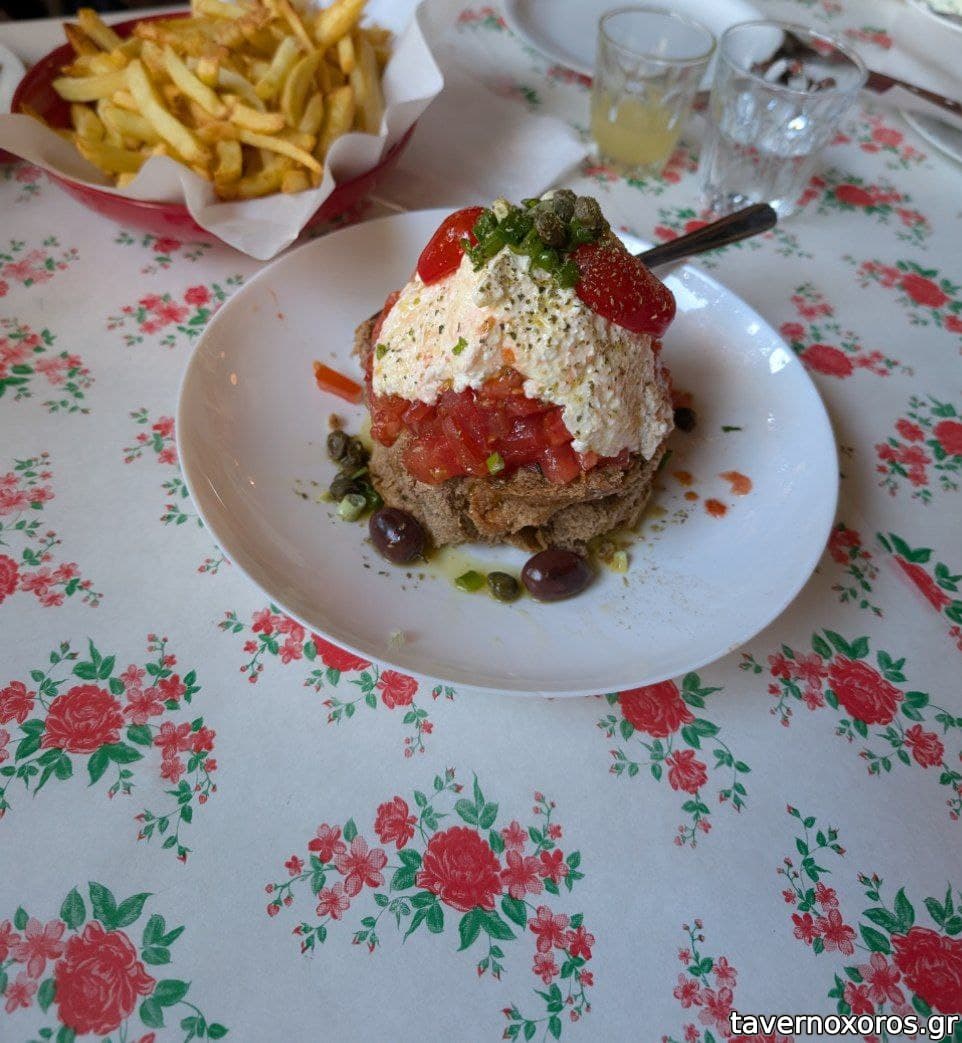 Ντάκος (πολύ κακός και ακριβός, ντομάτα προχθεσινή και από πάνω ένα νερουλό πράγμα που δεν ήξερες τι ειναι και όχι ψιλοκομμένη φέτα