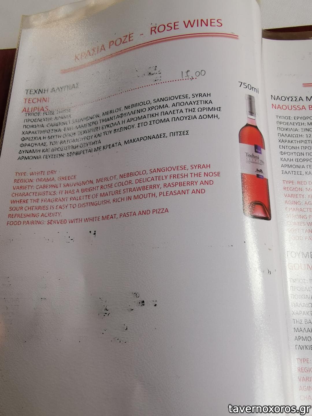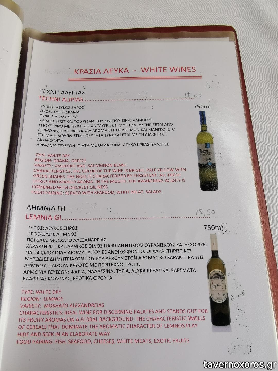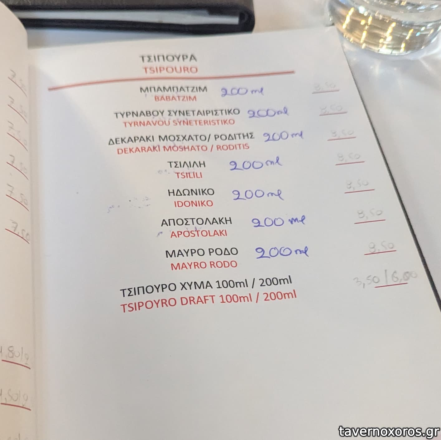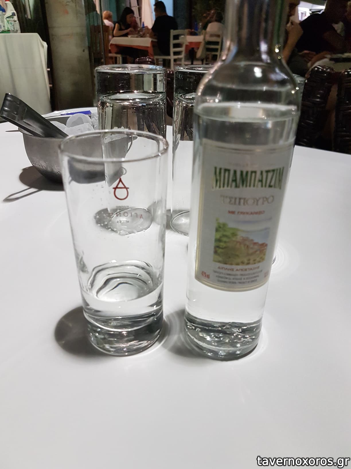 Τσίπουρο-χωρίς μας ήρθε δυνατό, ευτυχώς πήραμε 100ml. Γυρίσαμε σε Λευκό κρασί χύμα, Μοσχάτο είπε, που ήταν εξαιρετικό!!