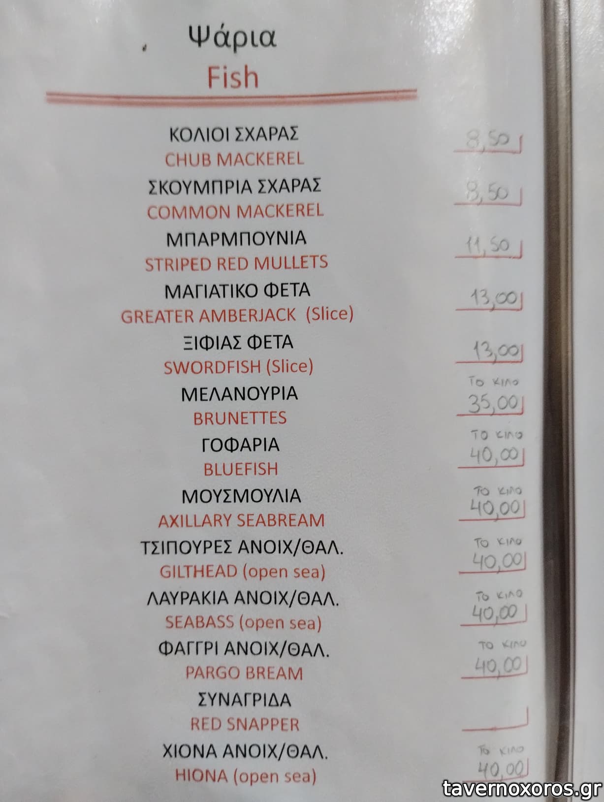 Μεγάλος κατάλογος, που όμως μάλλον υποστηρίζουν καλά. Φθηνά ψάρια (40ε/κιλό τα ακριβότερα). Καλή ποικιλία σε μεζέδες. Το σέρβις φιλικό και ακριβές (δουλεμένο).