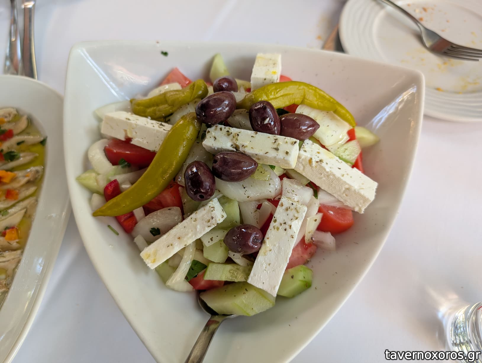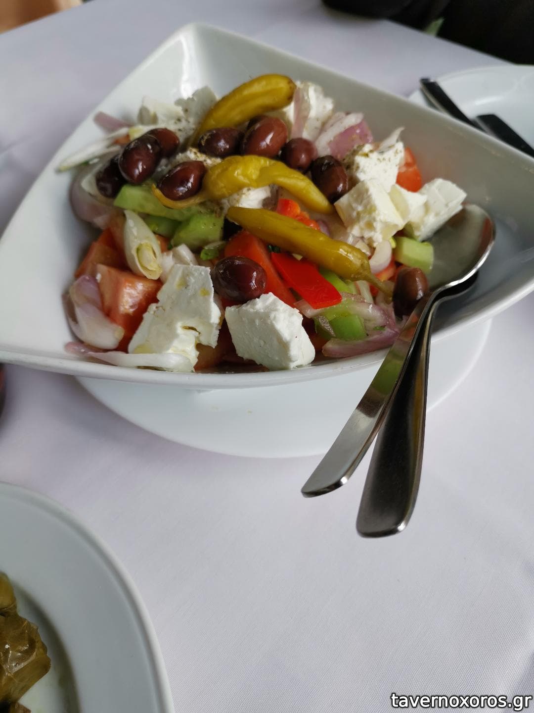 Μελιτζανοσαλάτα πολύ καλή, η χωριάτικη πλούσια σε υλικά ενώ το χύμα κρασί του δεν δημιουργεί παρενέργειες.