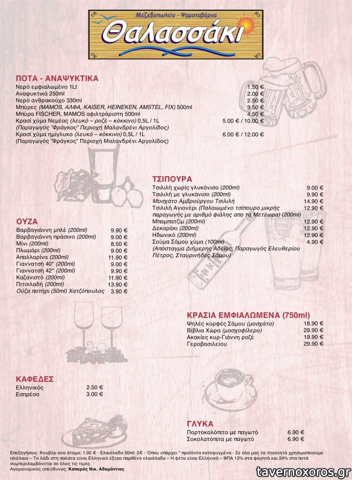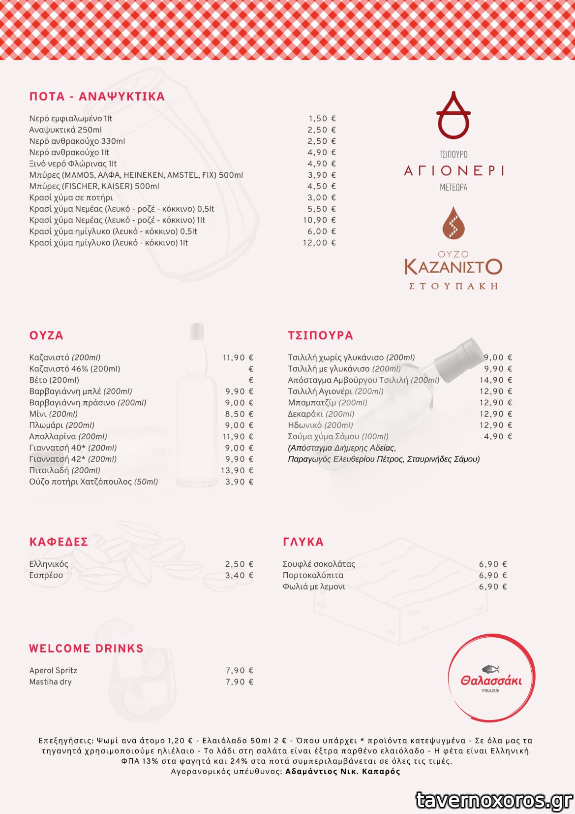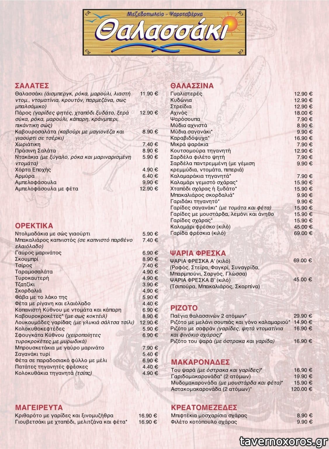 | Λέξεις κλειδιά | #αμπελοφάσουλα, #γαύρος μαρινάτος, #ντολμαδάκια, #καβουροκροκέτες, #κολοκυθοκεφτέδες, #σφουγγάτο, #ψαρόσουπα, #όστρακα, #στρείδια, #κυδώνια, #γυαλιστερές, #αχινοί, #μύδια, #γαύρος, #σαρδέλα, #αθερίνα, #μαρίδα, #σαφρίδια, #κουτσομούρες, #χταπόδι, #γαρίδες, #μπακαλιάρος σκορδαλιά, #παέγια, #μπαρμπούνια, #μακαρονάδες, #μπιφτέκι, #κοτόπουλο |