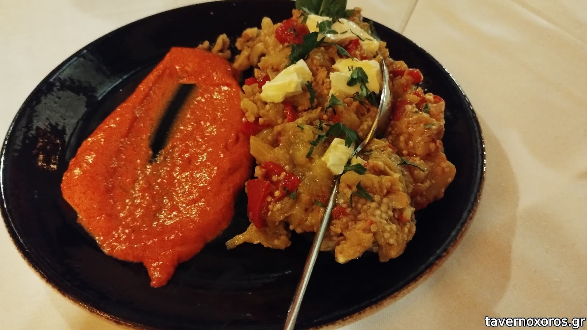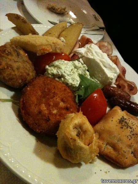 1 πολύ μικρό κομμάτι σαγανάκι, νομίζω πως το τυρί ήταν μπάτζος (τοπικό έδεσμα στη Νάουσα) κλασσικό.
