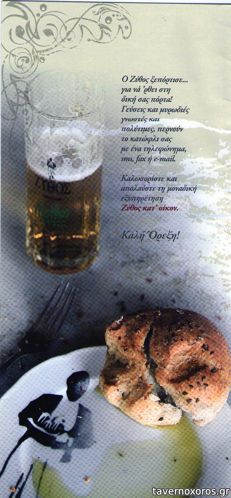 Τα εδέσματα όλα μέτρια σε γεύση και επιγραμματικά να αναφέρω τα ντολμαδάκια με ρύζι όπου το ρύζι ήταν σαν ... πουρές , τα χοιρινά σουβλάκια με περισσότερο λίπος αντί κρέατος , η σως τυριού θύμιζε νερωμένο γιαούρτι και τέλος οι προβεβλημένες πατάτες Ζύθος ήρθαν κρύες και γευστικά αδιάφορες !!