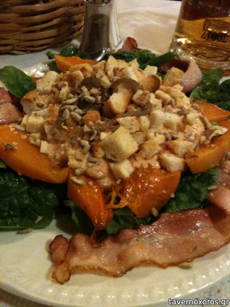 Η σαλάτα είχε σπανάκι, κολοκύθα, σώς φέτα, κρεμμύδι σωτέ και "