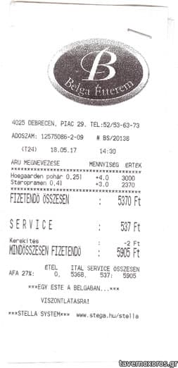 Πήραμε μπύρες Hoegaarden, Βέλγικη δροσερή θολή Witbier με άρωμα πορτοκαλιού (2,39€ σε ποτήρι 0,25l) και Staropramen Τσέχικη επίσης δροσερή με μια ελαφριά πικράδα στο τελείωμα (2,52€ σε ποτήρι 0,4l) και πληρώσαμε 18,80€. Θα ξαναπηγαίναμε ένα βράδυ για να δοκιμάσουμε την κουζίνα του...