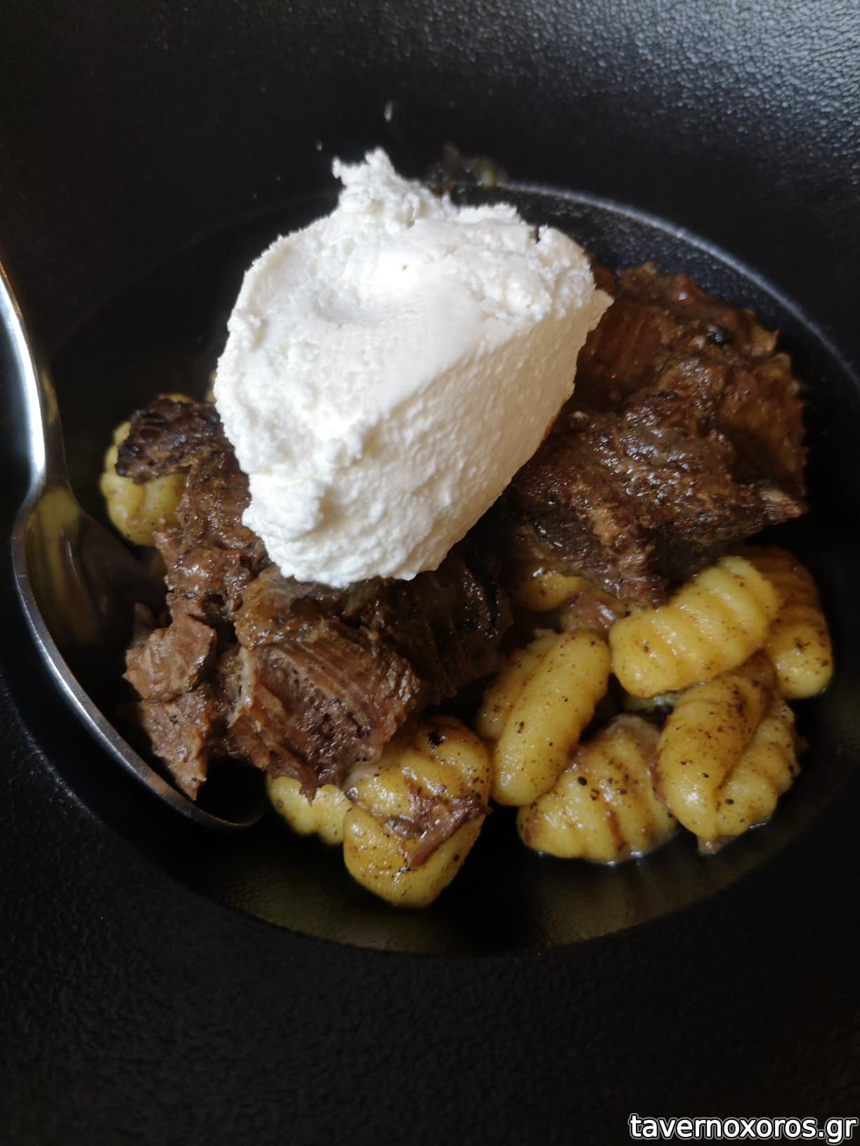 Μοσχαρίσια μάγουλα με νιόκι και γαλοτύρι - μια χαρά