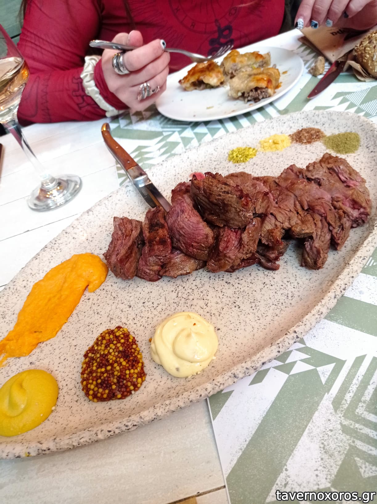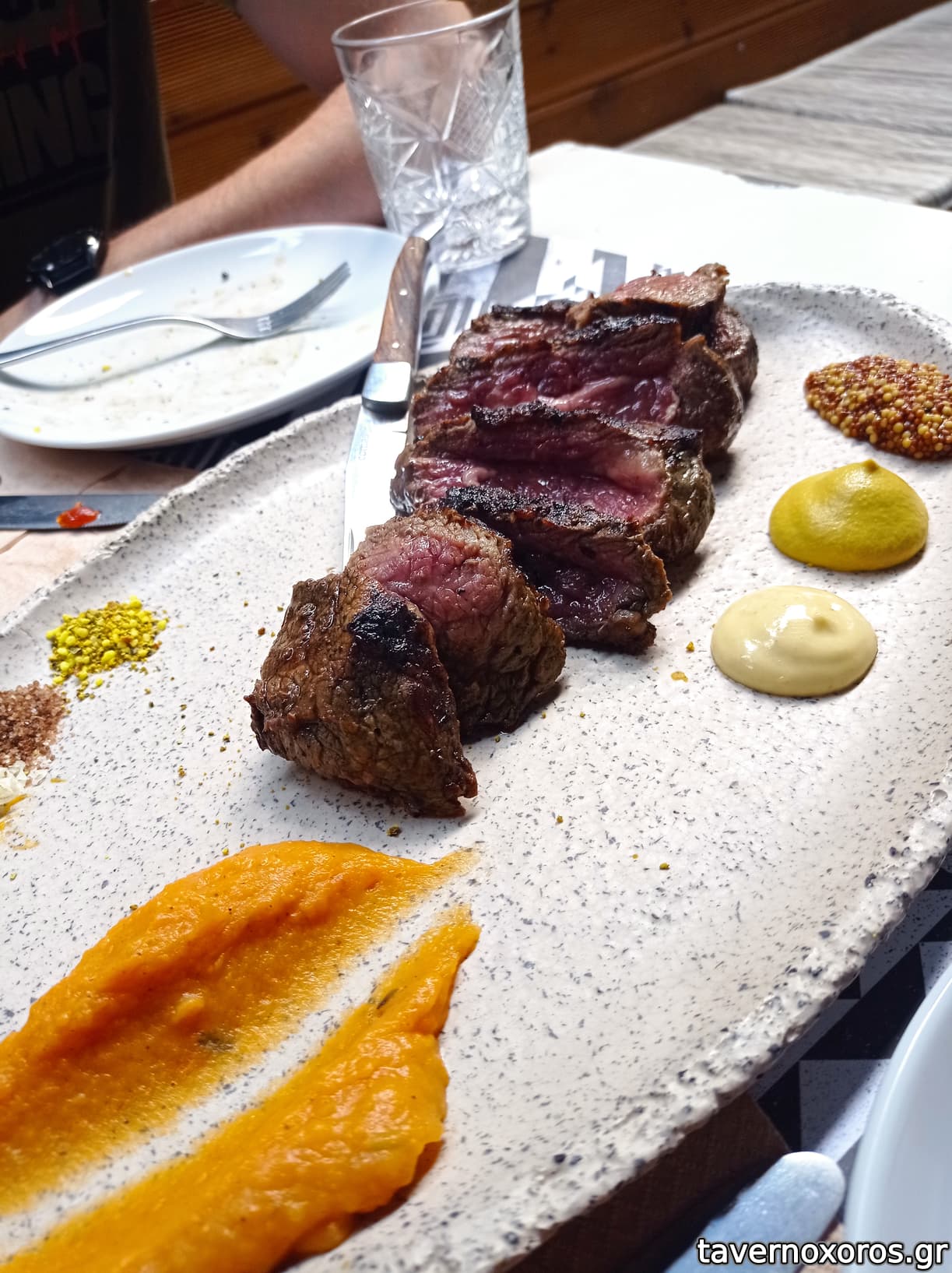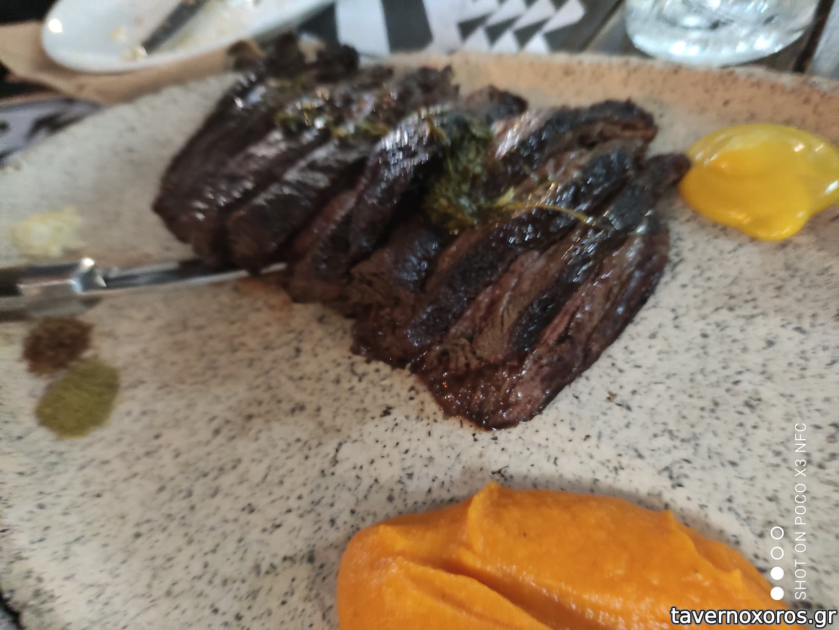 Σαλάτα με φακή μπελούγκα πολύ καλή, τατακι μόσχου από tri-tip black angus δεν ξετρελαθήκαμε αλλά αποδεκτό, πατάτες χεράτες χοντροκομμένες καλές, περέκ με φέτα πολύ καλό και μισόκιλη flat iron steak εξαιρετική.