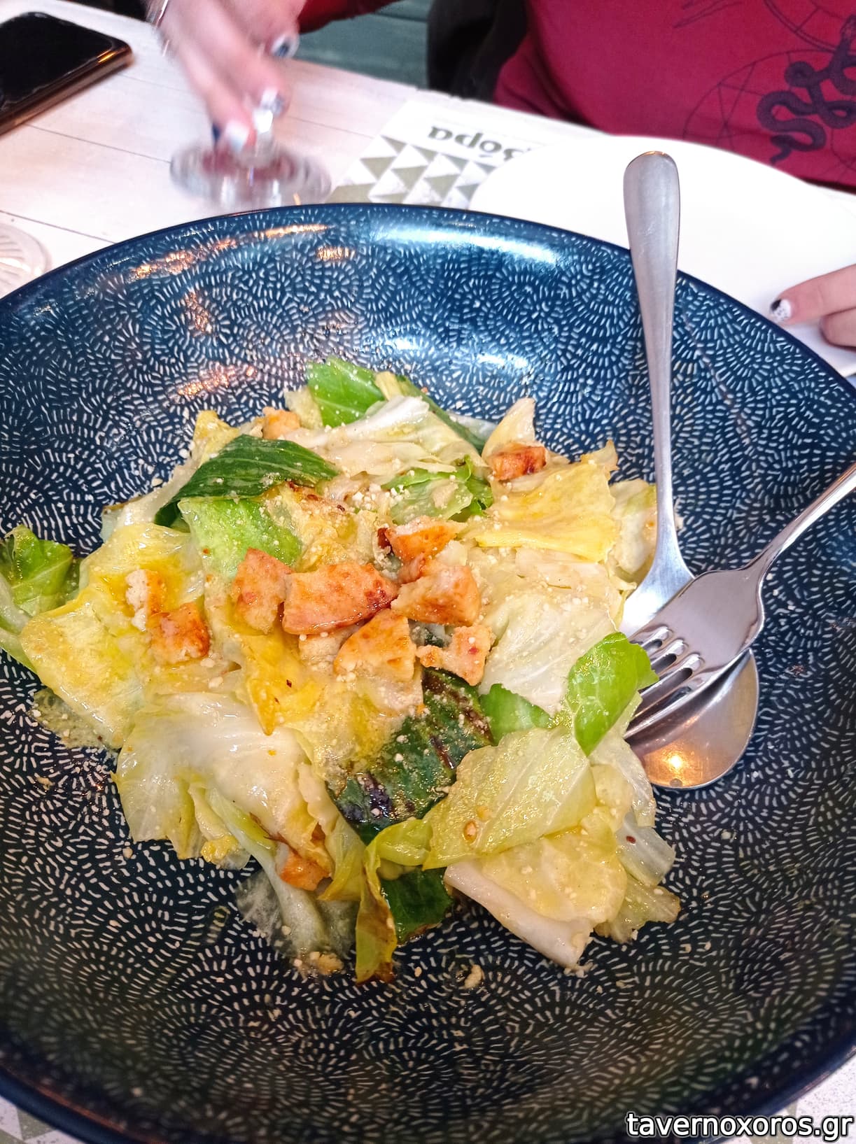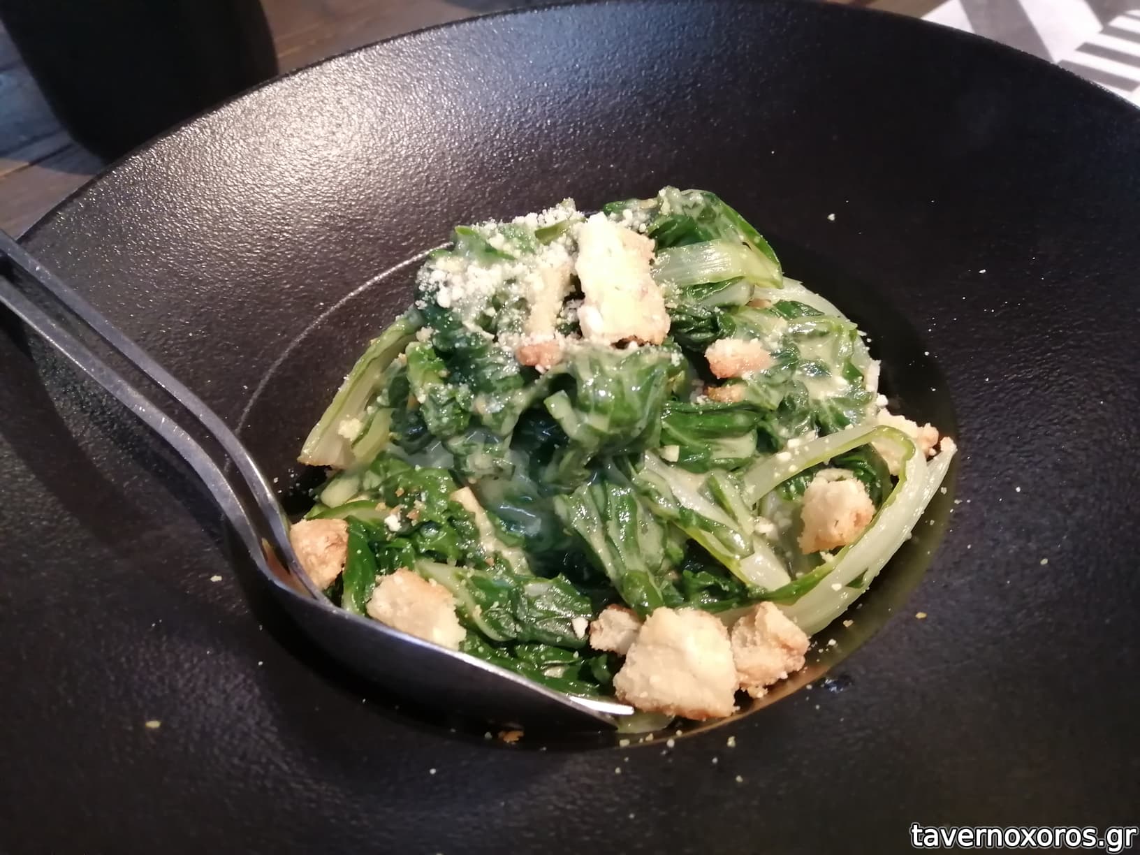 Σαλάτα με βραστά χόρτα, λάθος βρασμένη. Δεν μασιοταν , δεν κατέβαινε από τον λαιμό. Μικρή ποσότητα, ανοστη, δεν κατάλαβα κασιους και σίγουρα δεν είχε παλαιωμενη γραβιερα. Κάκιστο πιάτο.