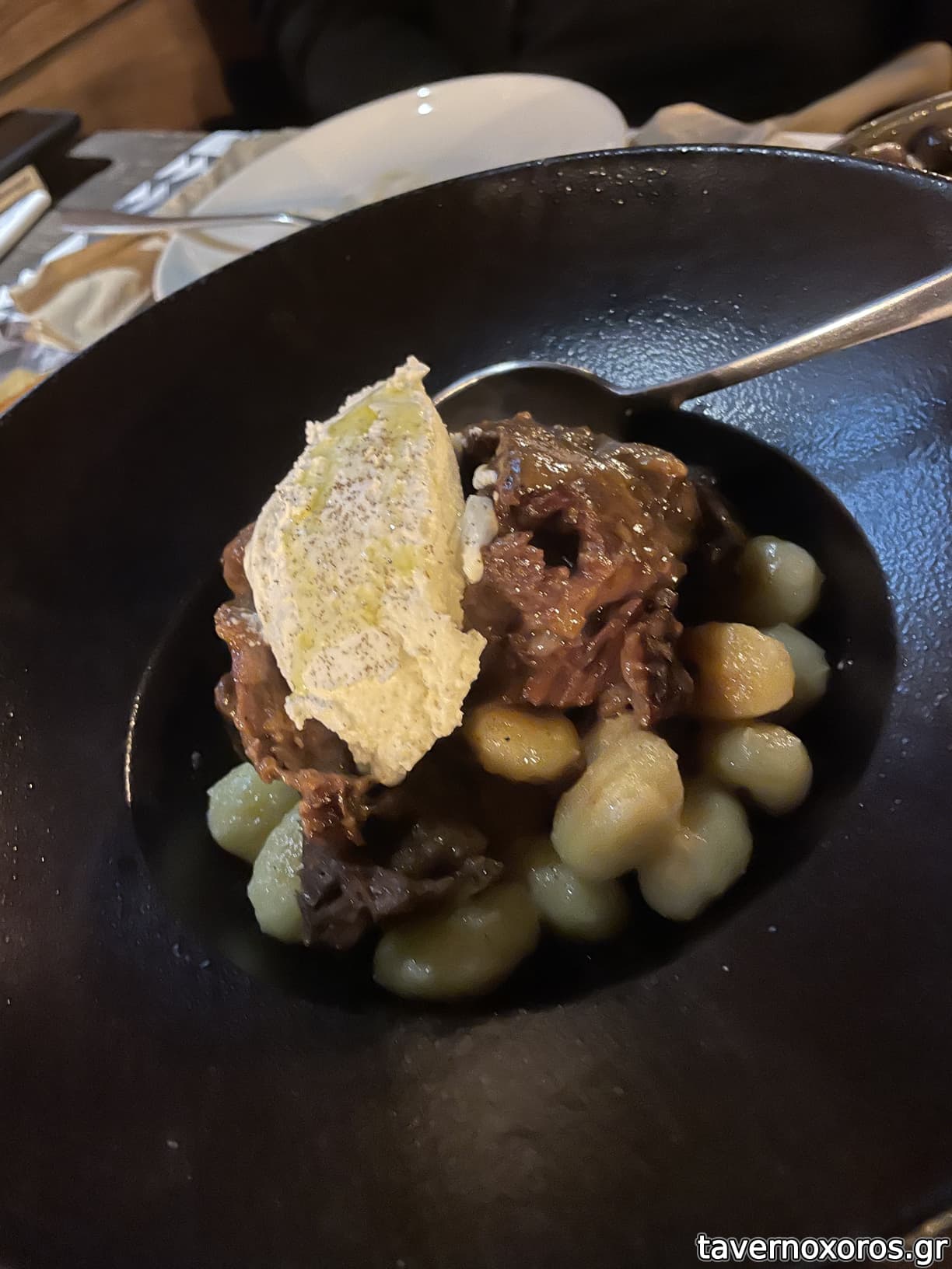 - Μάγουλα μοσχαρίσια με νιόκι και γαλοτύρι. Πολύ καλά, τρυφερό το κρέας, ωραία τα νιόκι.