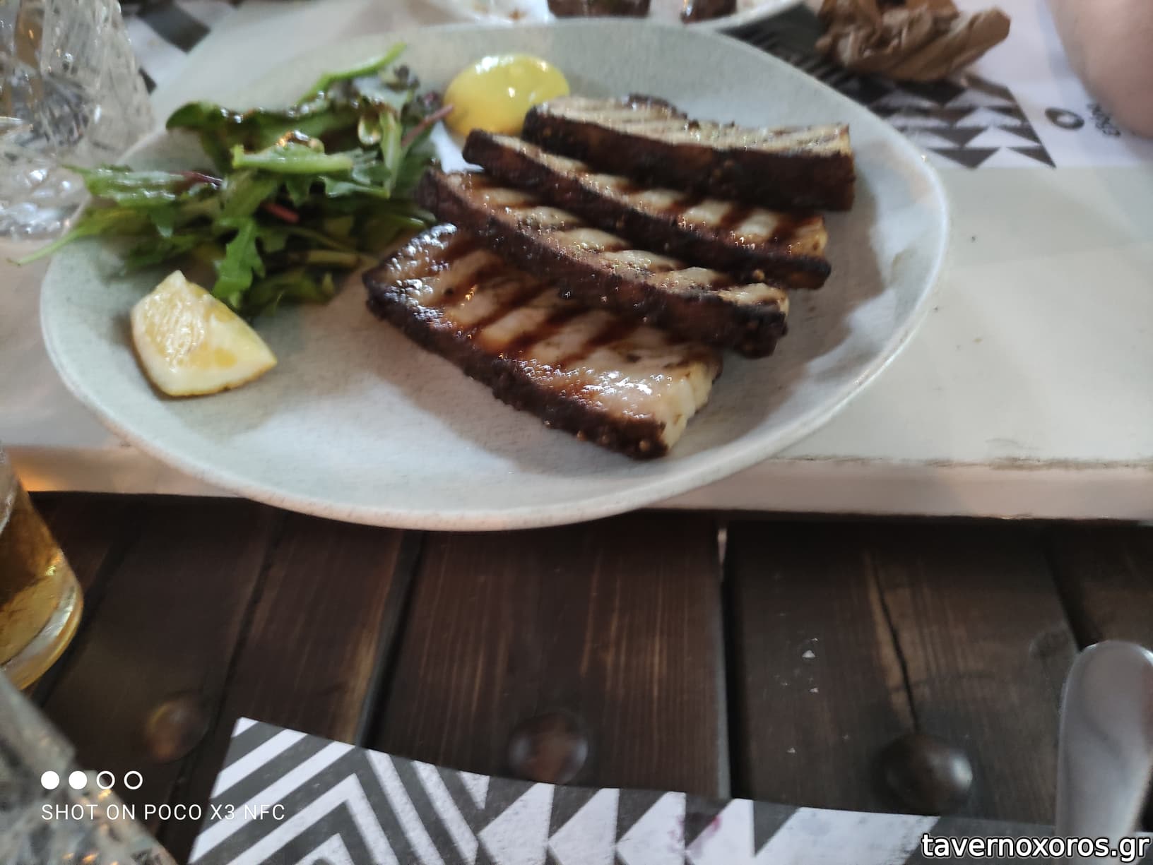 καπνιστή πανσέτα αγριογούρουνου (πολύ νόστιμη), (ίσως για λίγο πιό νεανικά στομάχια),