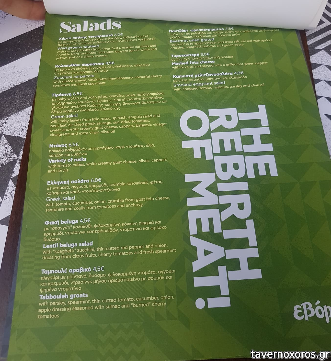 Σαλάτα με βραστά χόρτα, λάθος βρασμένη. Δεν μασιοταν(το οποίο βλέπω δεν έτυχε σε εμάς μόνο και ας είπε έτσι ο σερβιτόρος.)