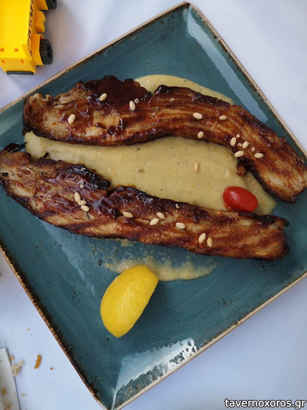 -Διπλοφουρνιστή πανσέτα με πουρέ μελιτζάνας - πολύ καλή, η μελιτζάνα μια χαρά
