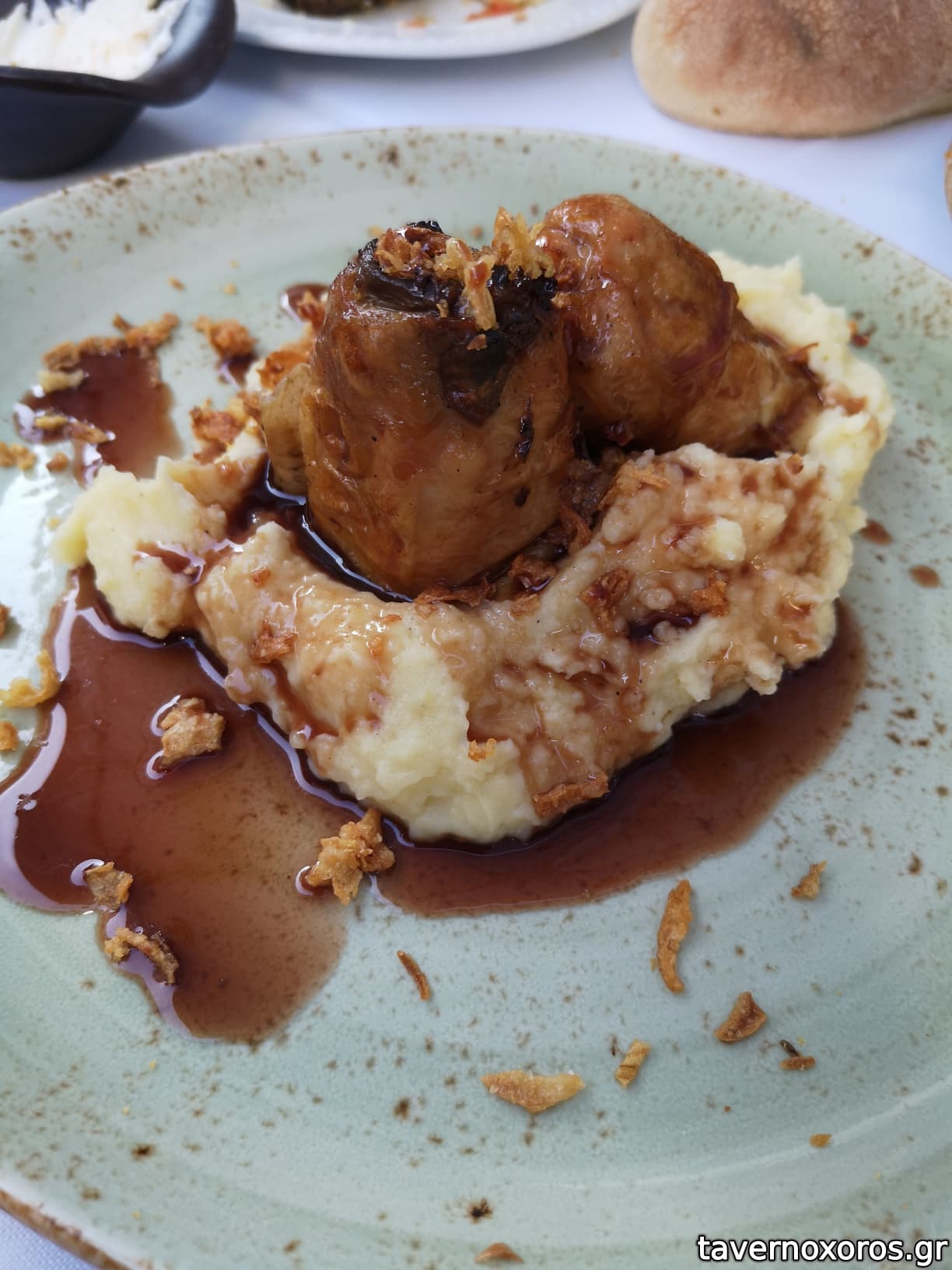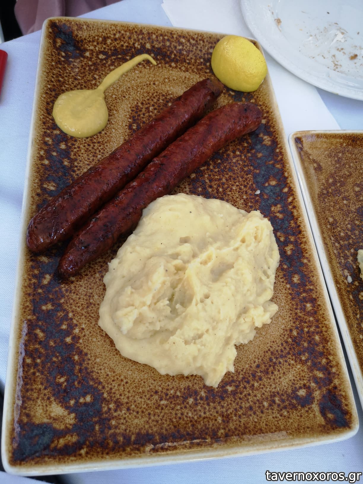 -Πρόβειο λουκάνικο με πουρέ πατάτας (ξανά) - καλό, ο πουρές ομοίως με πάνω