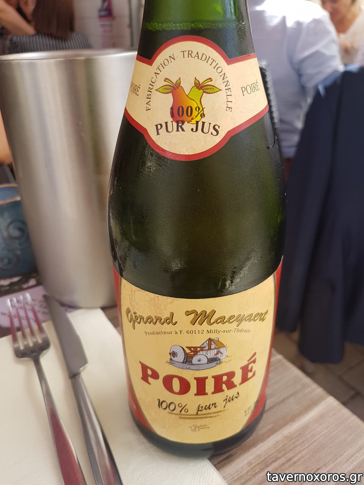 Poiré de Normandie (καλούτσικο, είναι σαν μηλίτης αλλά από αχλάδι, τίποτα το ιδιαίτερο, οι μηλίτες είναι καλύτεροι)