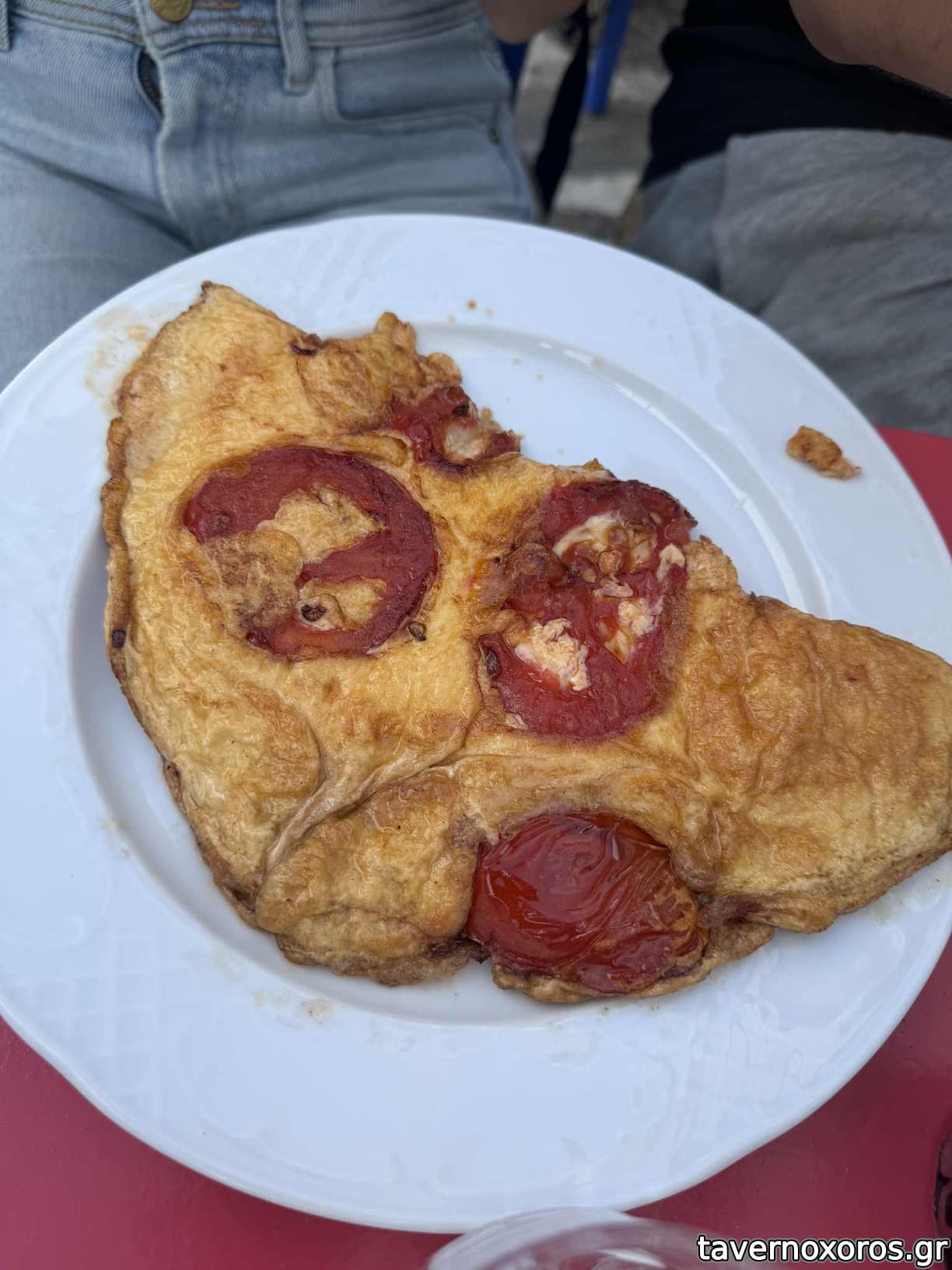 Ομελέτα με μελίπαστο Αμοργού (καλή, το τυρί ελαφρώς αλμυρό, πολύ νόστιμο)