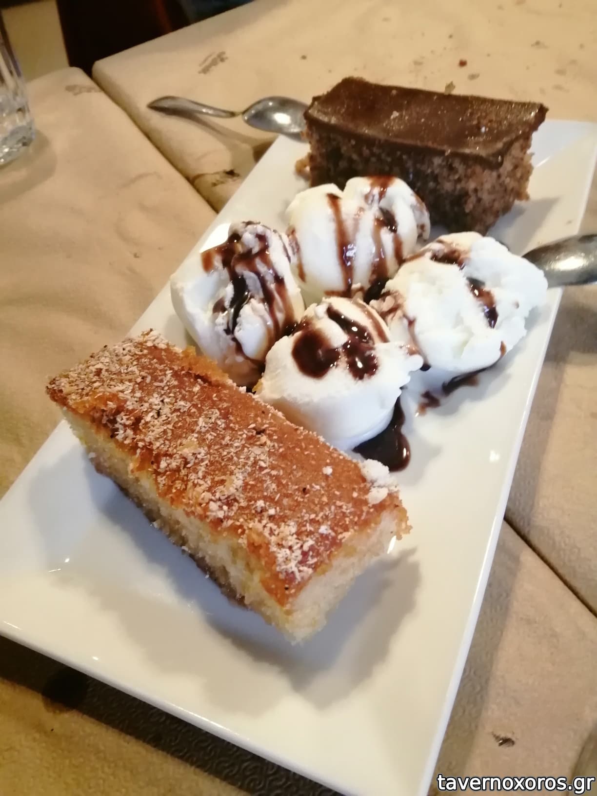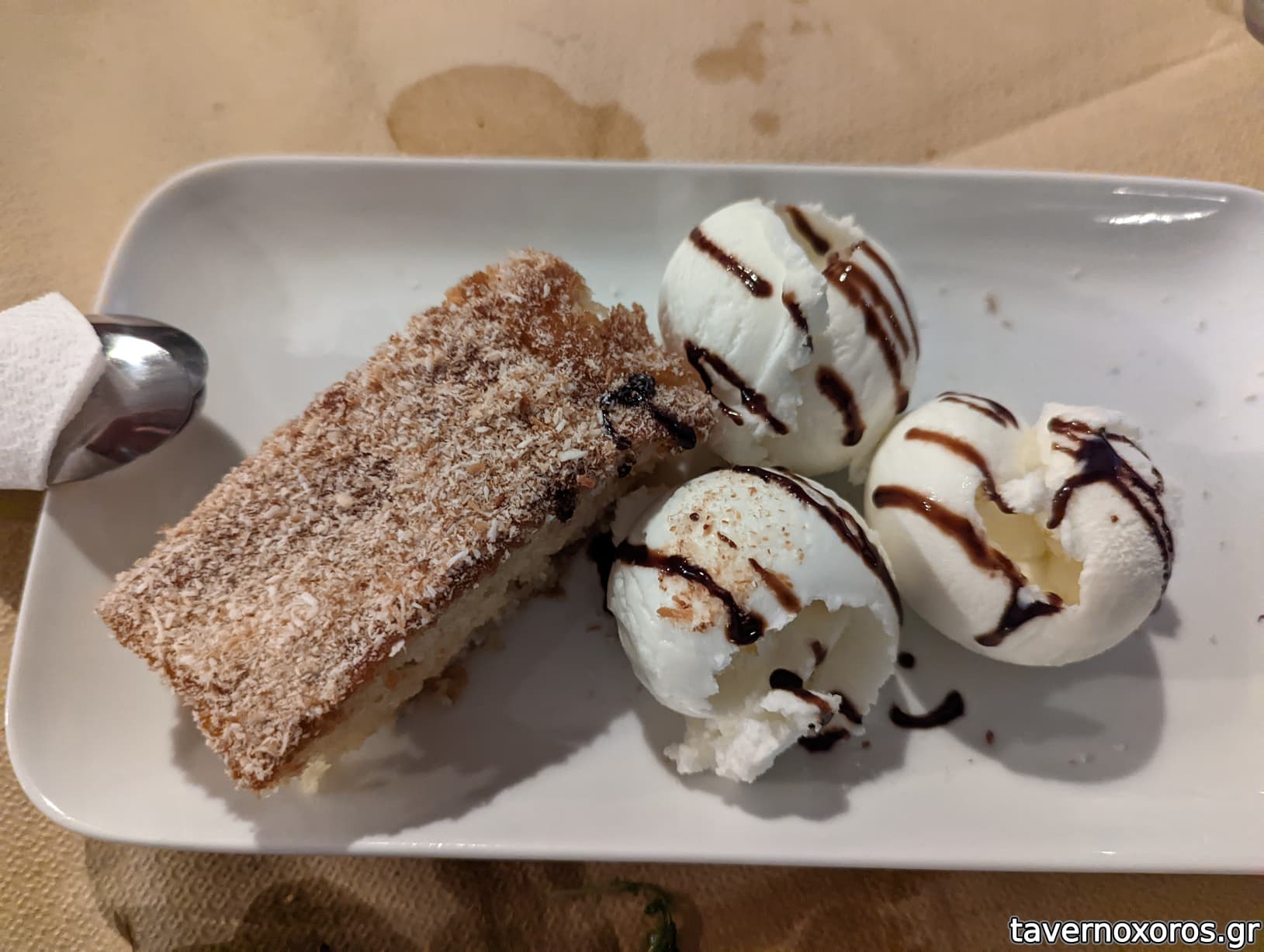 Κερασμένο ραβανί με παγωτό.