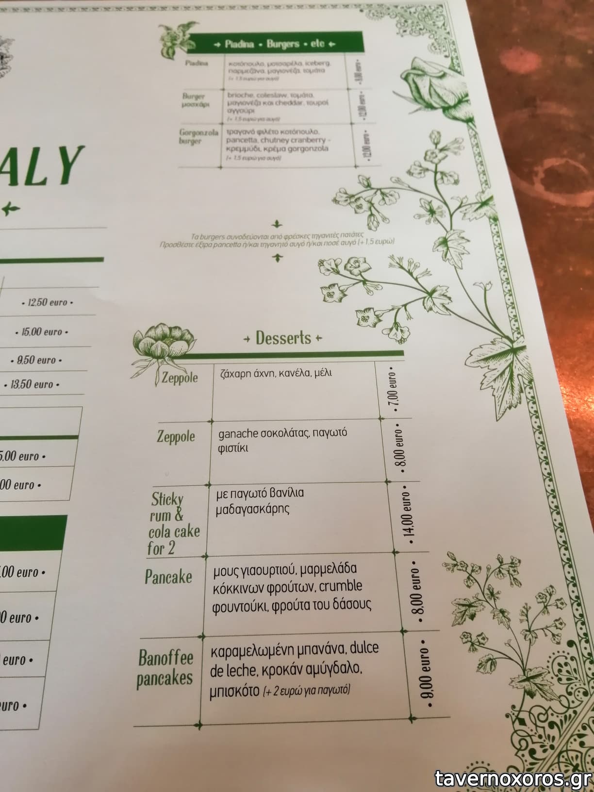 Caesars: κοτόπουλο, μαρούλι, iceberg, σως Καίσαρα, παρμεζάνα, πανσέτα κρουτόν, τριμμένος κρόκος αυγού