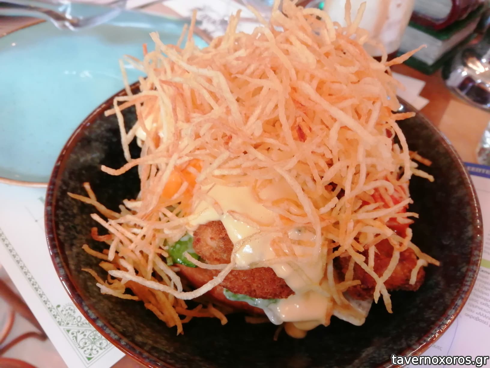 Πανσέτα παναρισμένη με πάνκο, 2 crispy παναρισμένα αυγά, brioche, κρέμα σπανάκι, hollandaise, πατατάκια, πράσινη σαλάτα