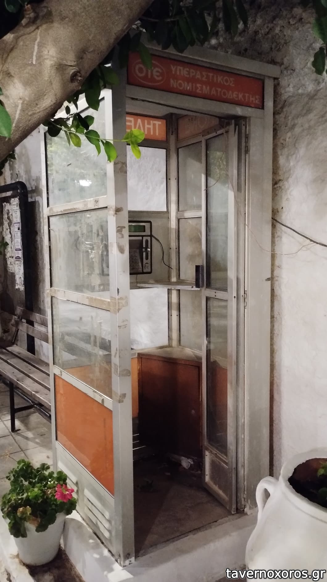 Τηλεφωνικός θάλαμος μπροστά στο μαγαζί (ρετρό)