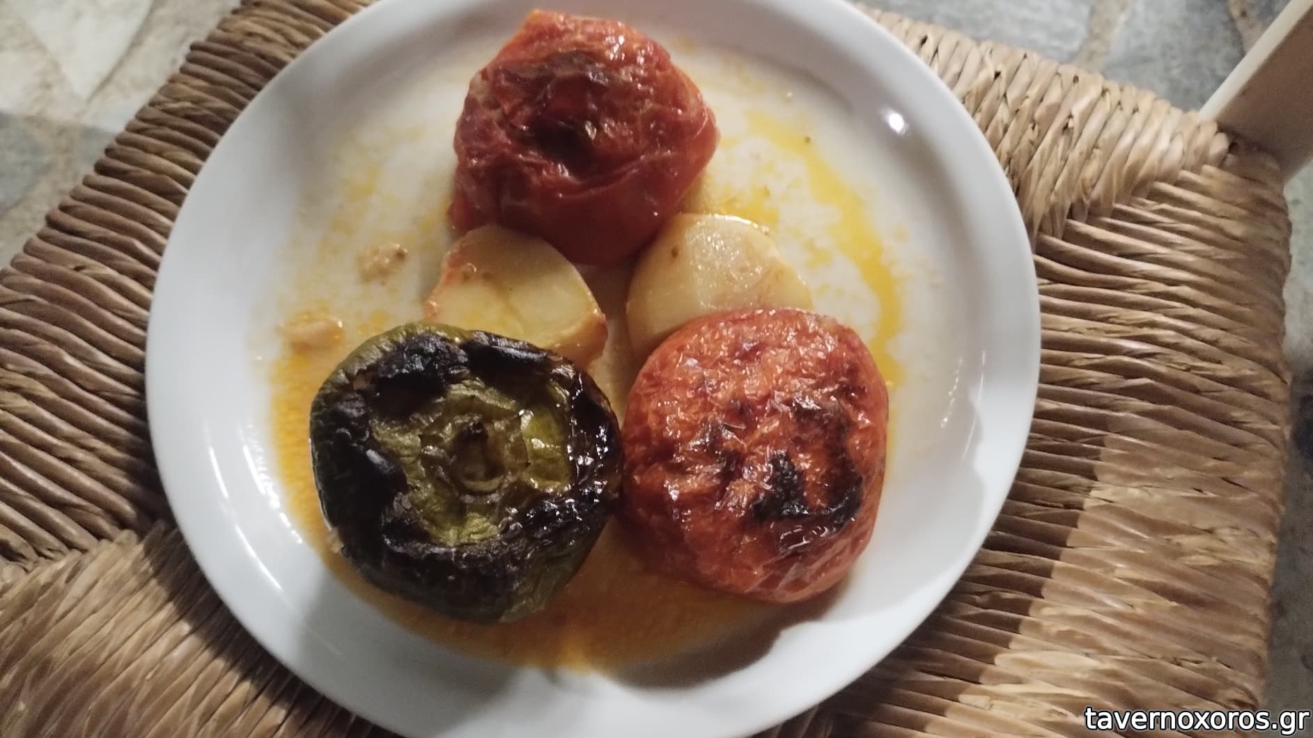 -Γεμιστα με ρυζι. 4-5 μεγαλα γεμιστα, απολαυστικα, με γευσεις αυθεντικες. Οι ντοπιες πρωτες υλες (πιπεριες/ντοματες), ανεβαζουν τις γευσεις σε πολυ υψηλα επιπεδα.