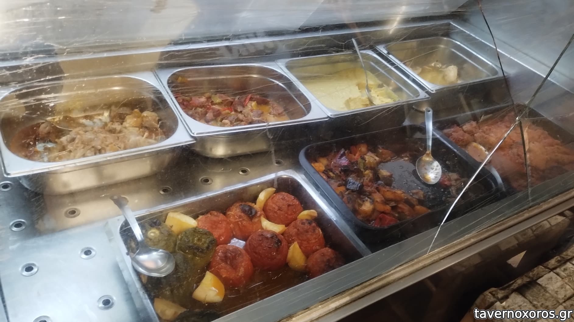 Η υπευθυνη του μαγαζιου (ιδιοκτητρια/μαγειρισσα), μας πηρε μεσα στην κουζινα και μας εδειχνε ενα ενα τα τσουκαλια και τα ταψια με τα λαχταριστα και φρεσκομαγειρεμενα φαγητα.