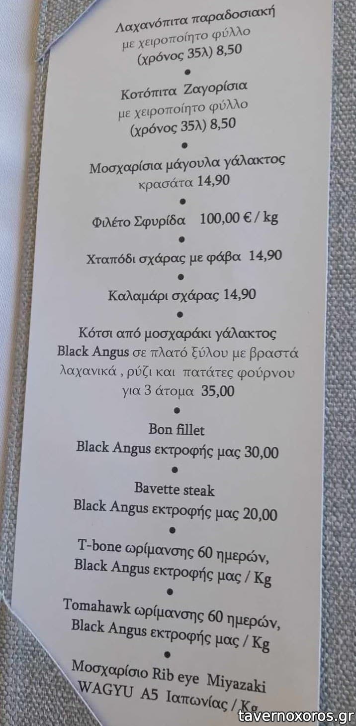 ΥΓ. Το «μοσχαρίσιο Rib eye Miyazaki WAGYU A5 Ιαπωνίας» το είχαν στα 600,