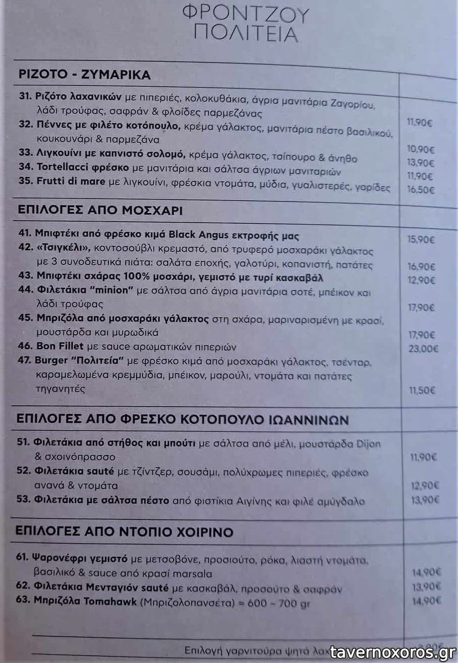 | Λέξεις κλειδιά | #private dining, #θέα, #πολυχώρος, #parking, #ξενοδοχείο, #παιδότοπος, #θέατρο, #κοπές, #steaks, #wagyu, #ωρίμανσης, #μάγουλα, #κότσι, #προβατίνα, #πανσετομπριζόλα, #ψαρονέφρι, #χοιρινή, #μοσχαρίσια μπριζόλα, #μπιφτέκι, #μοσχαρίσια γάλακτος, #κοτόπουλο, #μπιφτέκι γεμιστό, #μοσχαρίσια σπαλομπριζόλα, #ζυμαρικά, #ριζότο, #χυλοπίτες, #κόκορας κρασάτος, #μοσχαρίσια μάγουλα, #πίτες, #κοτόπιτα, #χορτόπιτα, #πέστροφα, #σολομός, #χέλι, #βατραχοπόδαρα, #χταπόδι, #μετσοβόνε, #μανιτάρια, #μαστέλο, #μιλφέιγ, #πανακότα, #τιραμισού, #λικέρ |