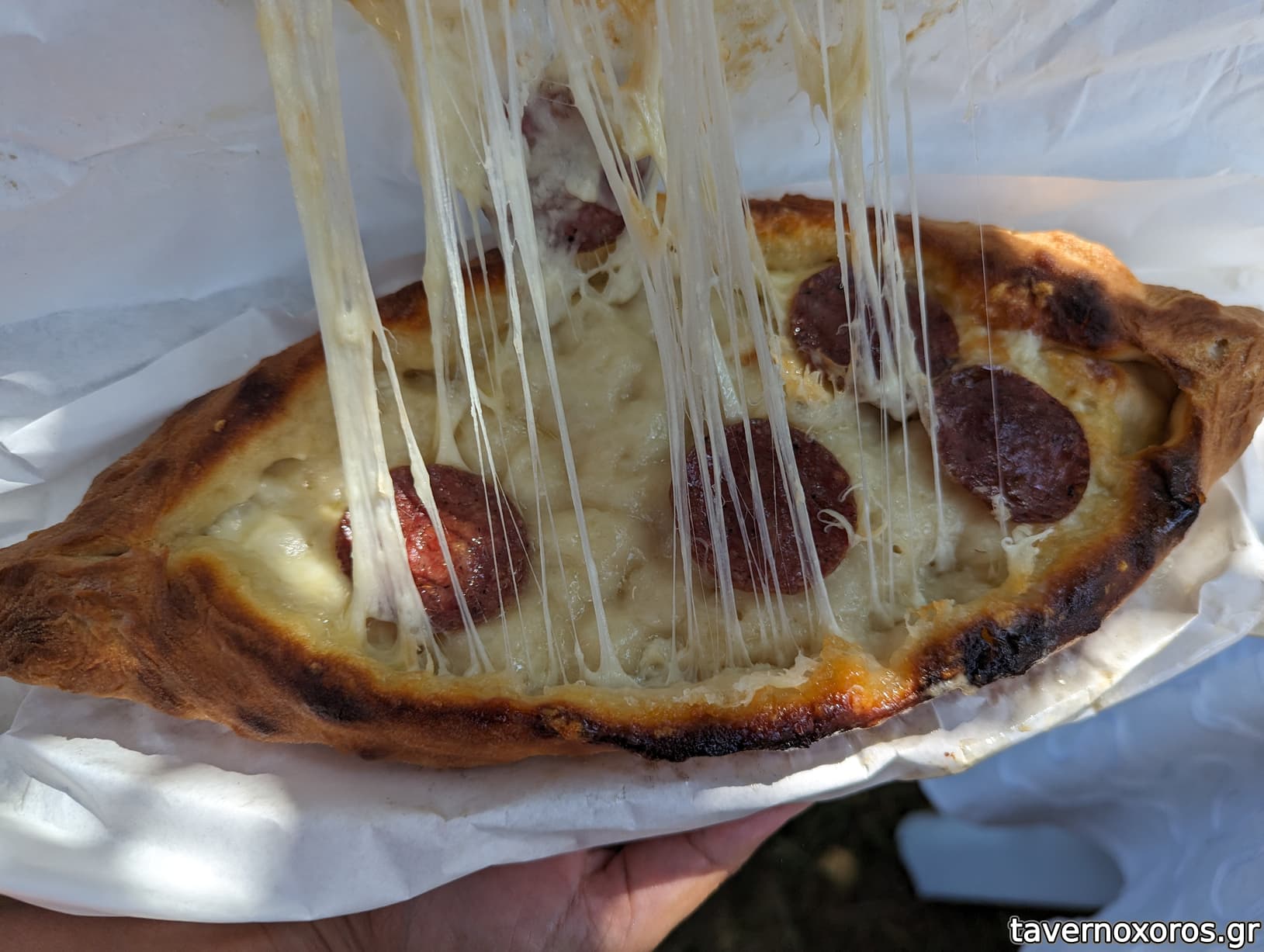Επιλογες σκετο κασερι στα 3€ και με παστουρμά ή σουτζουκι με 4€. Πολυ ωραια ολα , με μπολικο φρεσκο βουτυρο , σερβιρονται λιτα σε μια λαδοκολλα, χωρις χαρτοπετσετες, χωρις μαχαιρι , τρως με το χερι. Πολυ ωραια εμπειρια , εστω για μια φορα αξιζει και αυτη η αναμονη, δεν ειναι για καθε κυριακη εκτος και εαν μενεις στο χωριο.