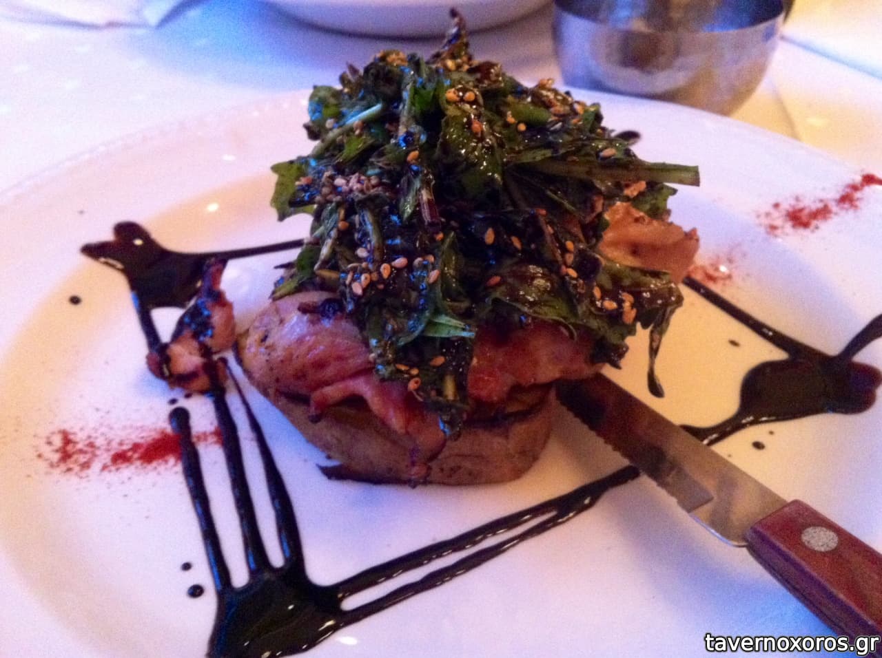 πάπια στη σχάρα με γλυκόξινη σάλτσα απο craberries πολύ καλό απλώς το κομμάτι της πάπιας ήταν τίγκα στο κόκαλο και σε παίδευε.