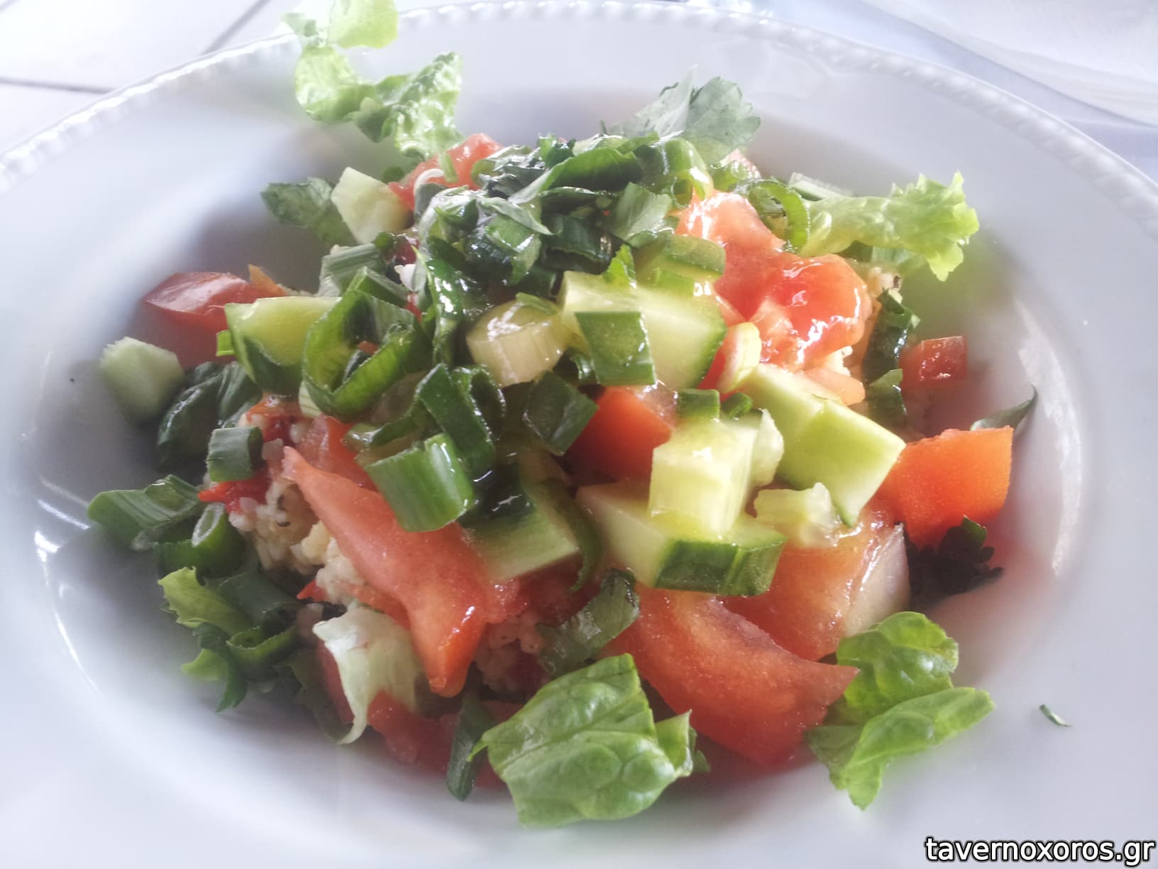 σαλάτα του χειμώνα με μπρόκολα κουνουπιδια κλπ άριστη και το ντρέσινγκ καταπληκτικο.