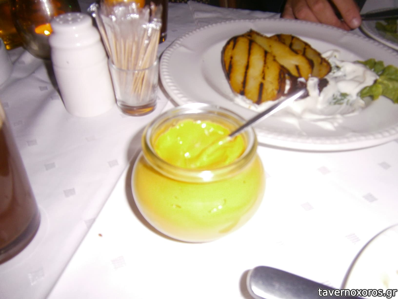 κεφαλοτύρι σαγανάκι μια χαρά (αλλά μικρη ποσότητα) με ωραία κρέμα λεμονιού