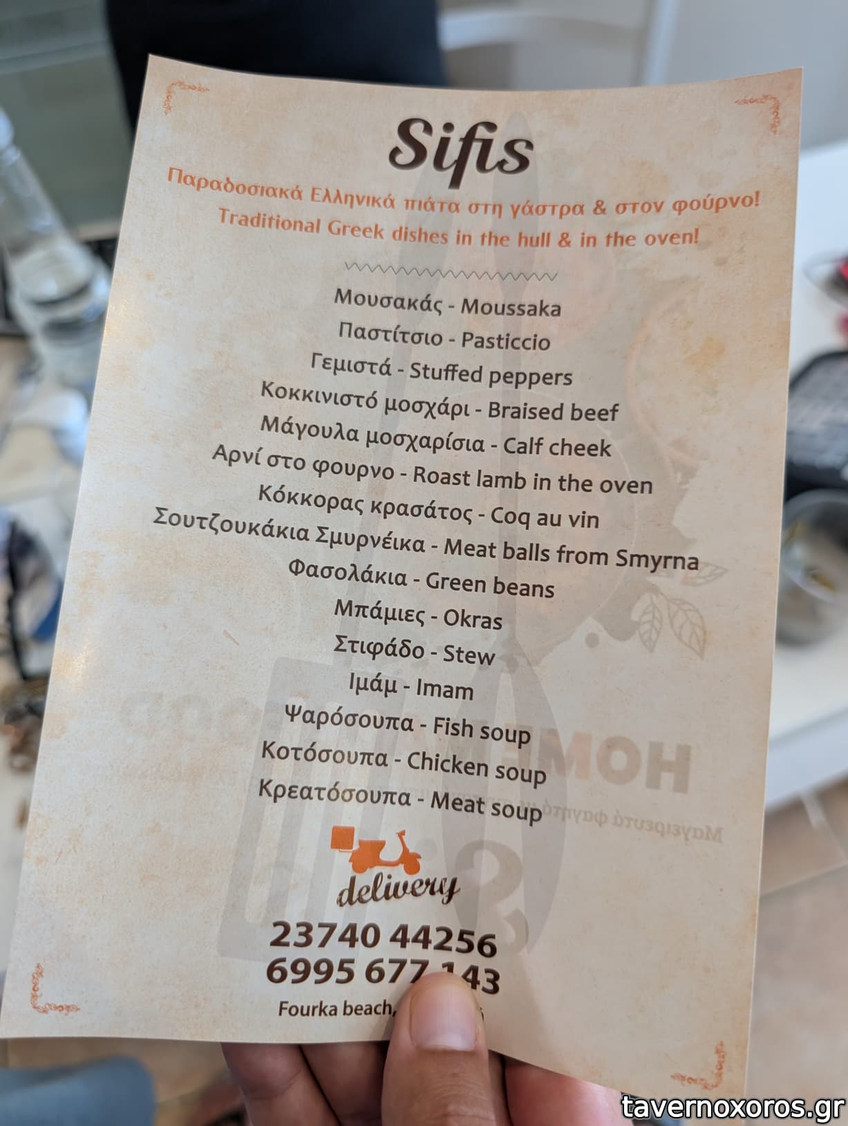 | Λέξεις κλειδιά | Σήφης, #πατσάς, #κόκορας κρασάτος, #συκώτι, #παϊδάκια, #κοκκινιστό, #σπεντζοφάι, #μουσακάς, #γεμιστά, #χοιρινή, #κοτόπουλο, #μπιφτεκάκια, #πανσέτα, #σκαλοπίνια, #σουβλάκια, #σουτζουκάκια, #αρνάκι στο φούρνο, #ψαρόσουπα, #τας κεμπάπ, #κοτόσουπα, #μοσχαροκεφαλή, #παστίτσιο, #μάγουλα, #σουτζουκάκια σμυρνέικα, #φασολάκια, #μπάμιες, #στιφάδο, #βραστό |
