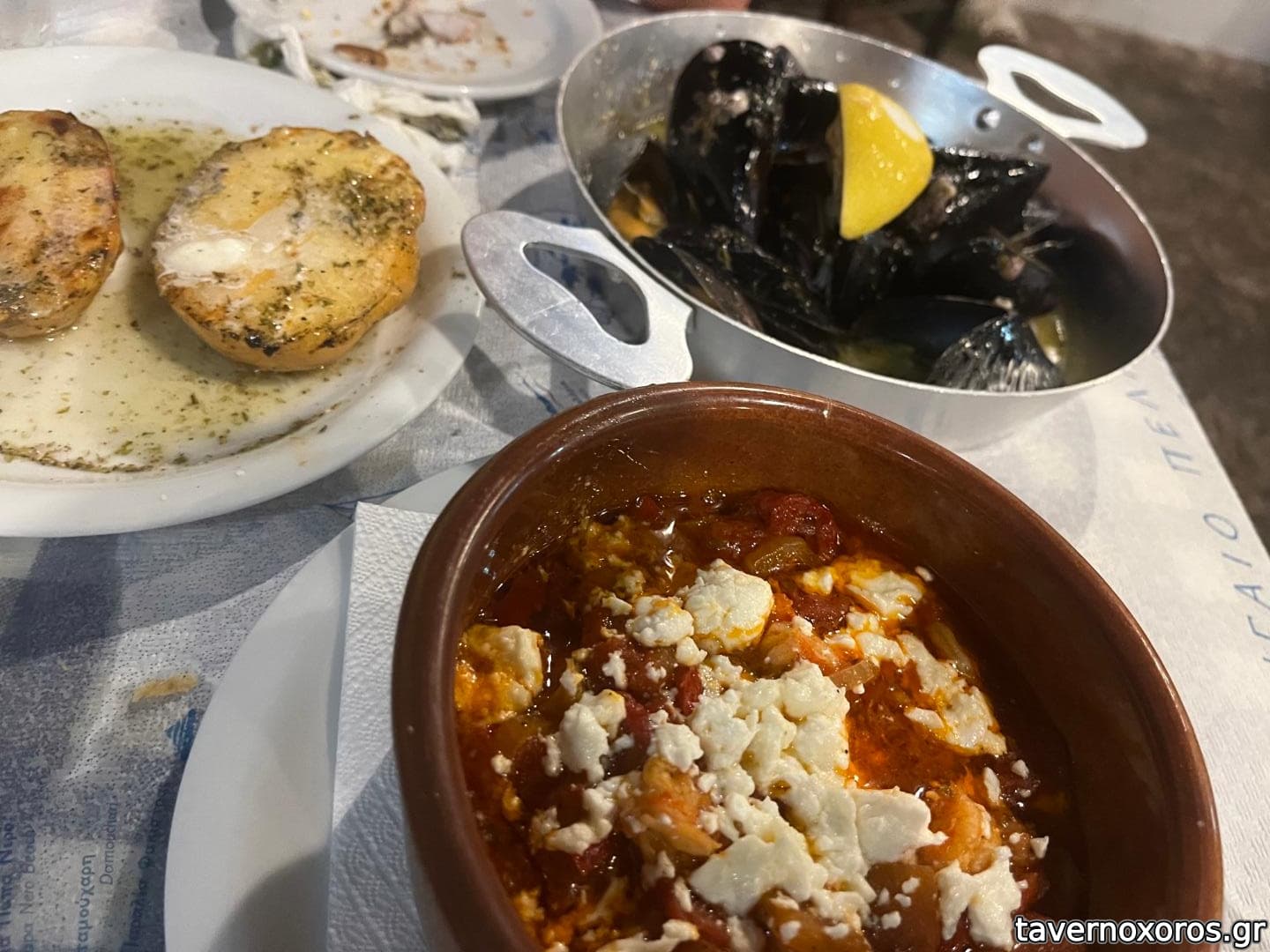 Μύδια αχνιστά (πολύ καλό), γαρίδα σαγανάκι (σε ρηχά νερά)