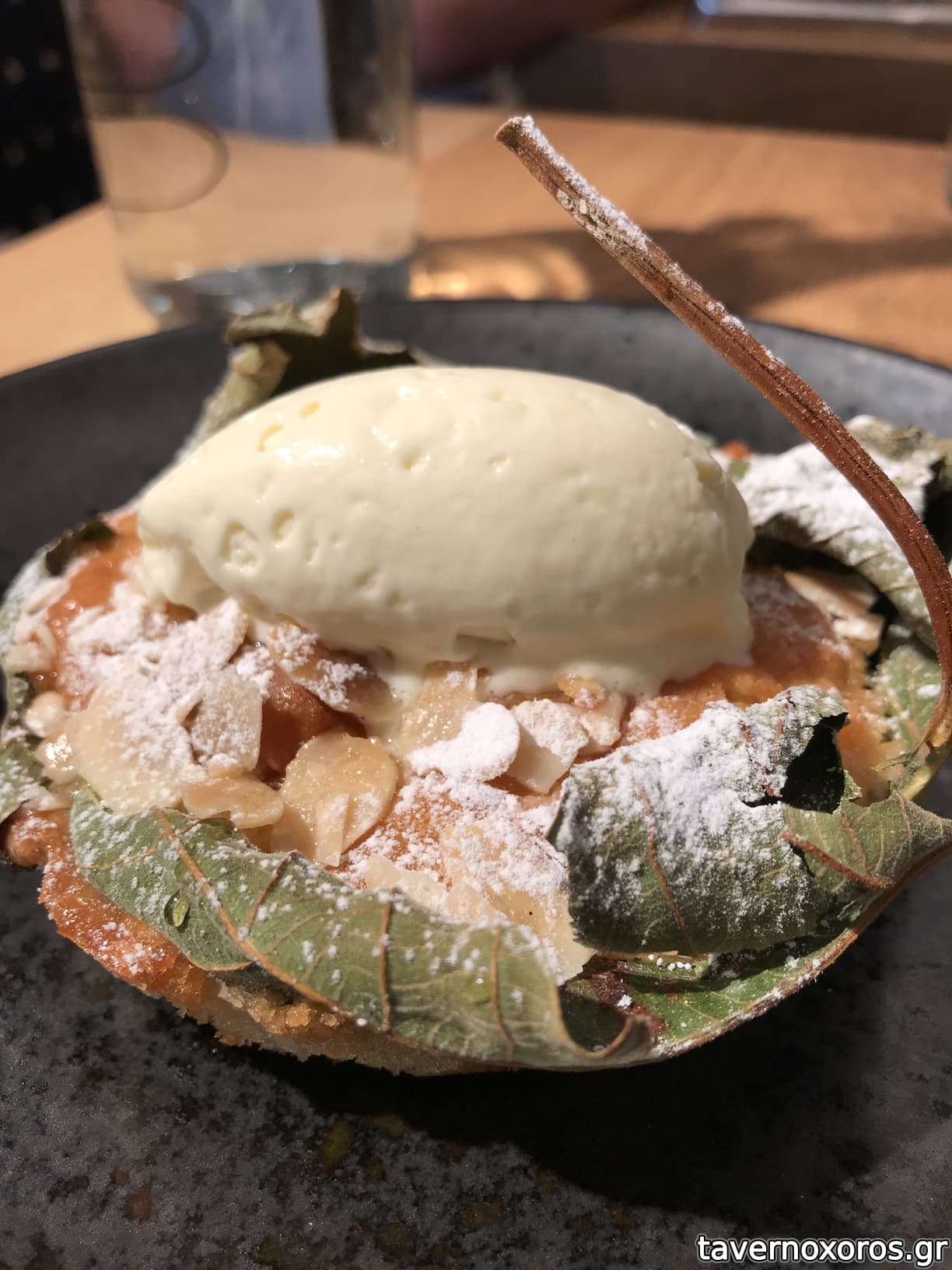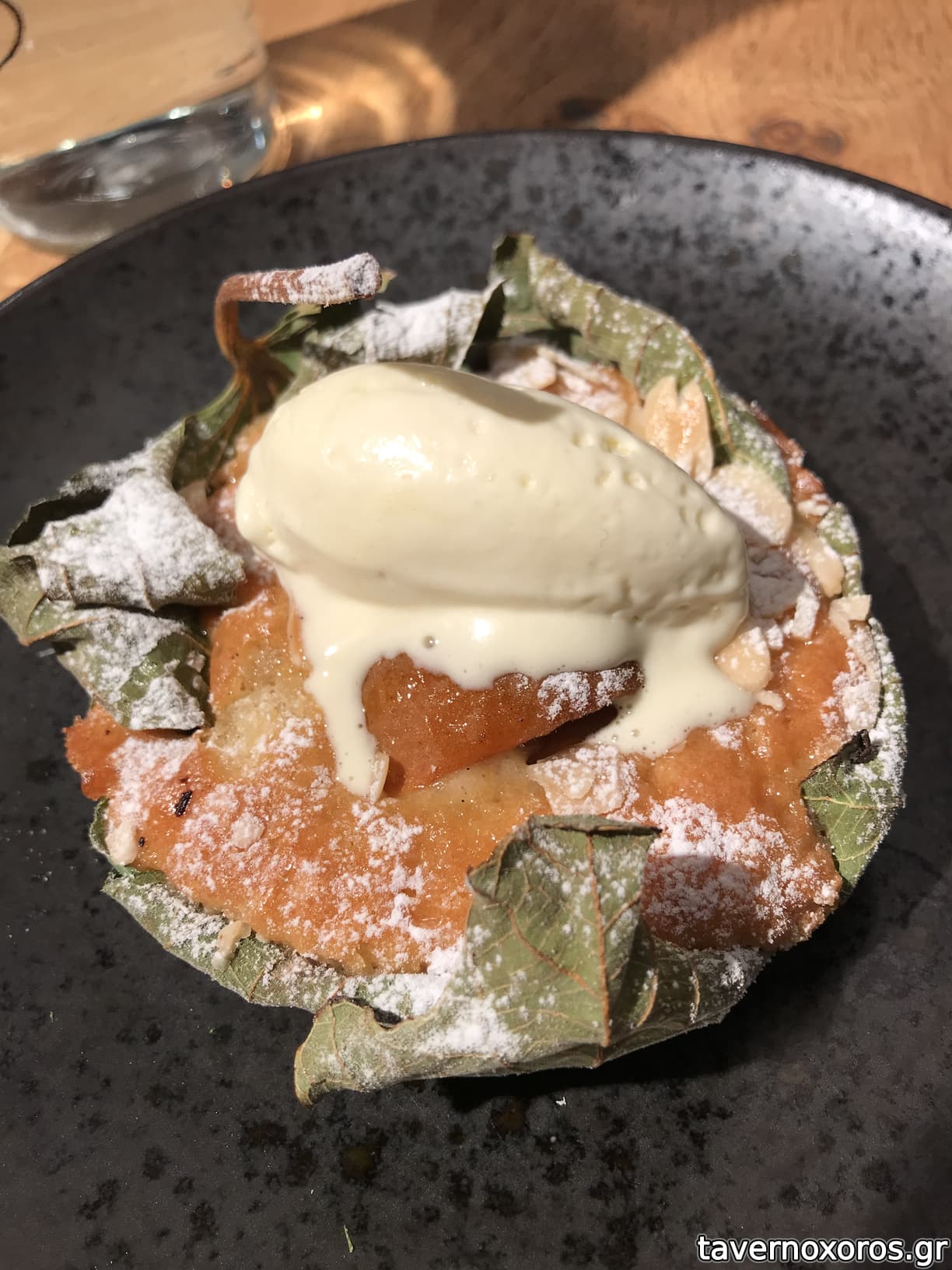 Τάρτα από βερίκοκο σε φύλλο σύκου με παγωτό σύκου (ενδιαφέρον)