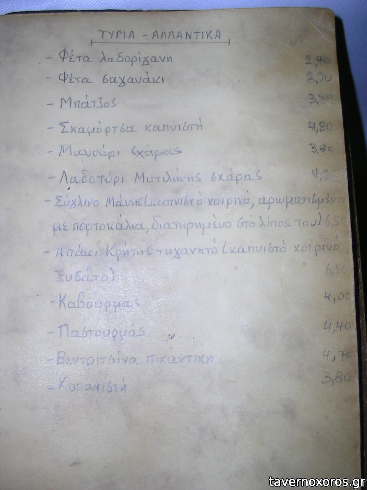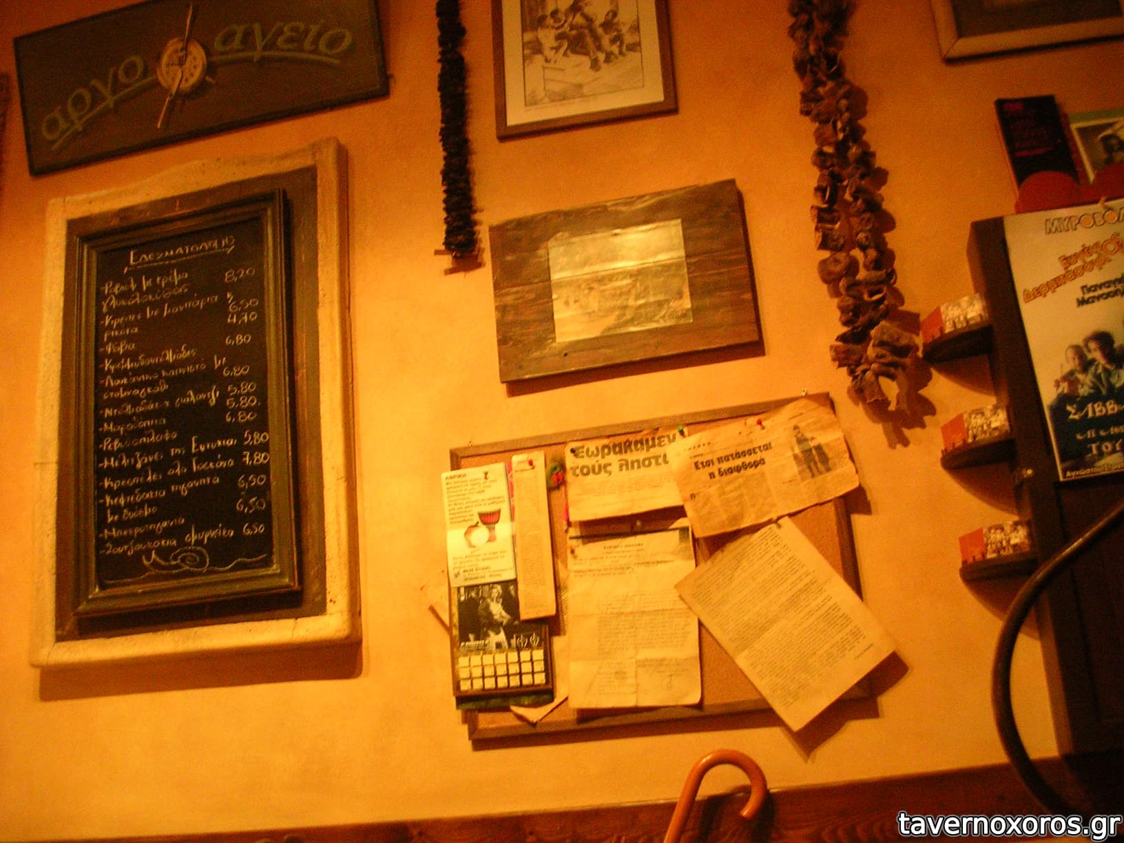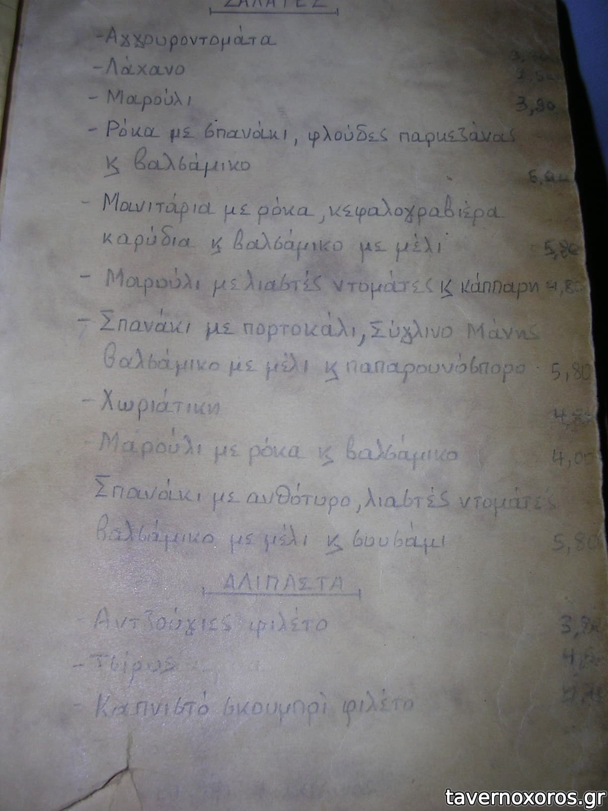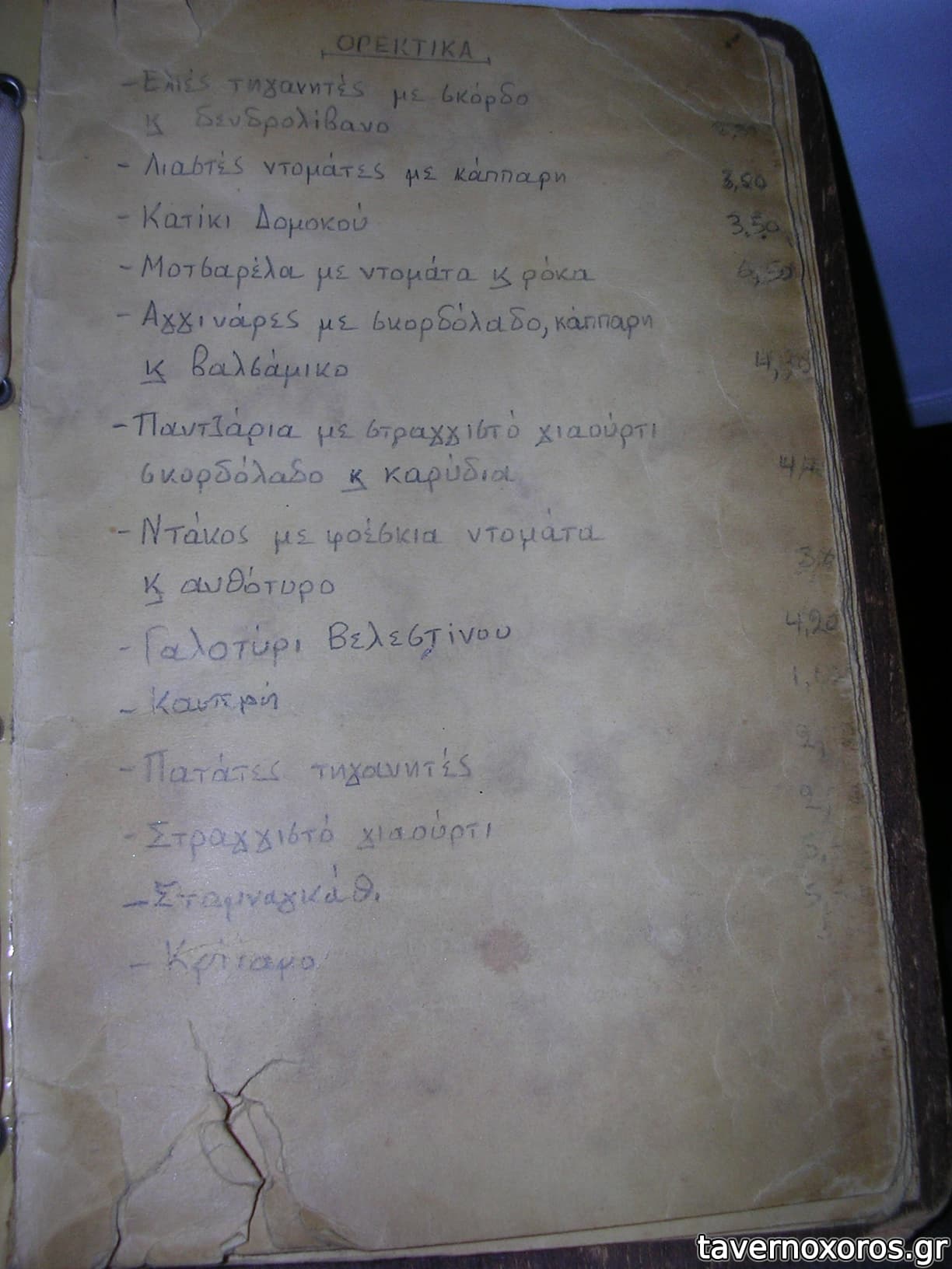 Ο κατάλογος είναι γεμάτος με άπειρους μεζέδες ενώ έχει λίγα κυρίως (λίγα σε σχέση με το πόσους μεζέδες έχει) αναρτημένα σε έναν πίνακα.