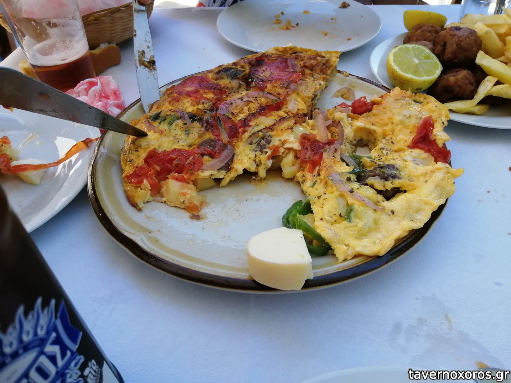 Φάγαμε: Μουσακά που συναγωνίζεται με αυτόν της γιαγιάς, χωριάτικη σαλάτα, μία απίστευτη Φρουτάλια μία τοπική ομελέτα με λουκάνικο (το φτιάχνει ο ίδιος) κρεμμύδια, πιπεριά, ντομάτες, τυρί κλπ, κατσικάκι στο φούρνο καταπληκτικό, ντοματοκεφτέδες όνειρο, τυρί (παραγωγής τους), 1 ρακί 250ml πάρα πολύ καλή και ένα κιλό εξαιρετικό λευκό κρασί από ντόπιο παραγωγό όλα αυτά μαζί με ένα παγωτό και ένα πακέτο τσιγάρα στα 49€ !! μας κέρασε και γλυκό λεμόνι που φτιάχνει αυτή.