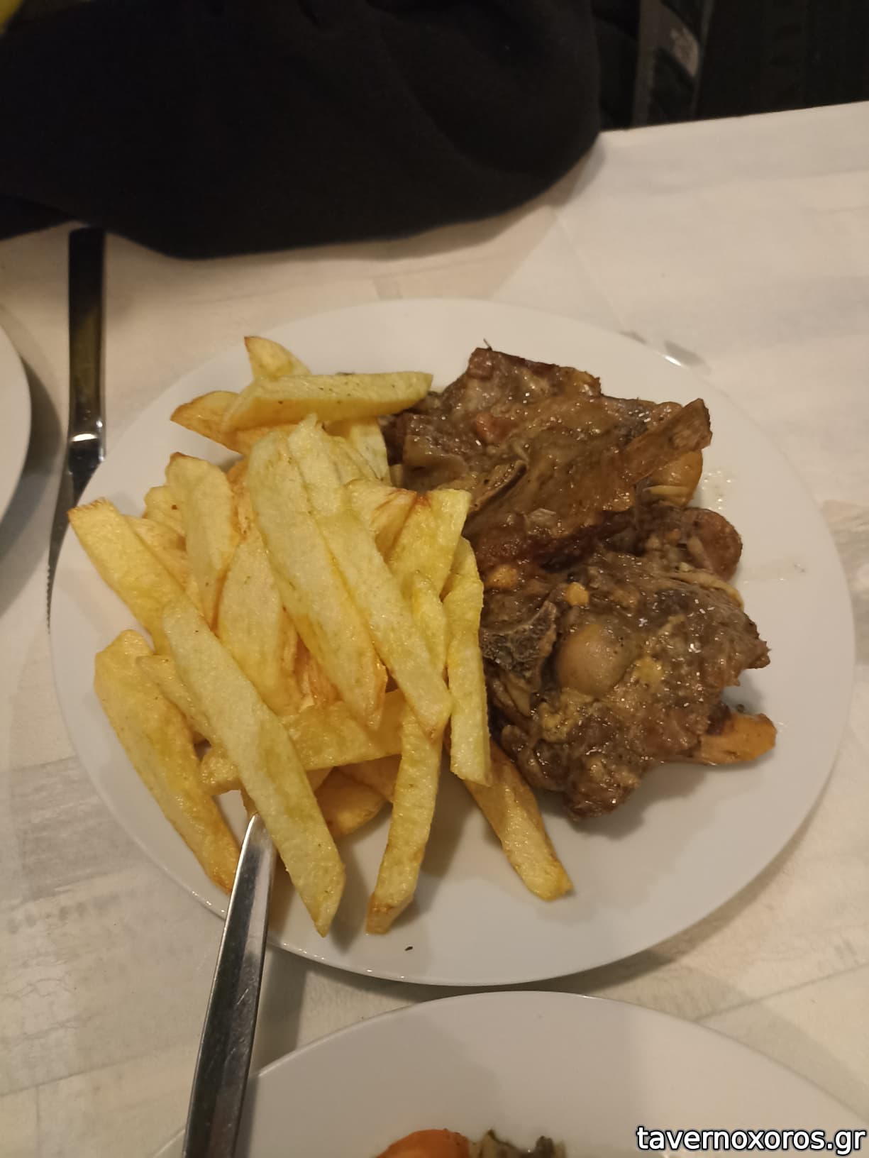 - Αρνί με πατάτες τηγ.: Γευστικό και μαλακό. Πατάτες χεράτες, μουΐ μπιέν.