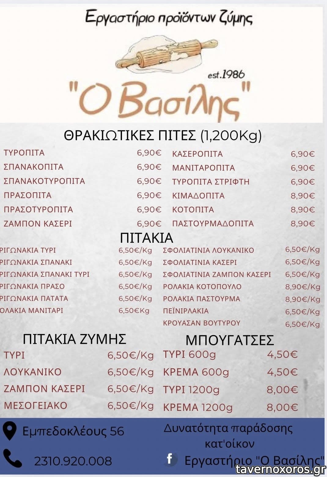 Ποικιλία από πίτες ενώ από μπουγάτσα είχε μόνο με κρέμα.