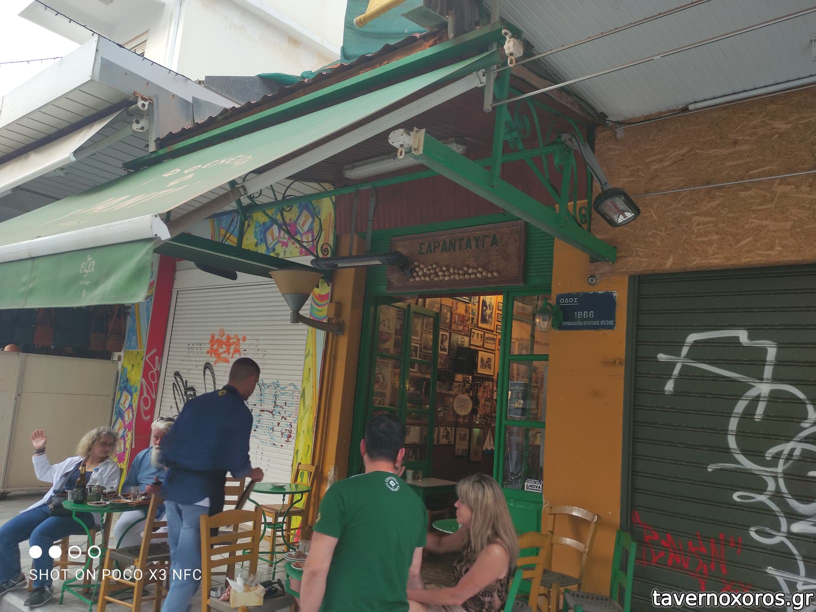 Ευχάριστος εξωτερικός χώρος πάνω στον πεζόδρομο της αγοράς. Ρακή με μεζέ, έφερε 4 πιατάκια: Συκώτι Σαβόρε, ελιές κρητικές ψιλές, ρυζάκι με ρεβύθια κάρυ και φασόλια με λουκάνικο. 5ε, οκ. Το τρέχει πια ο γιος του ιδιοκτήτη, φόλα ΟΦΗ με τατουάζ κτλ, καλό παιδί. Ο χώρος μέσα αξίζει για φωτό.