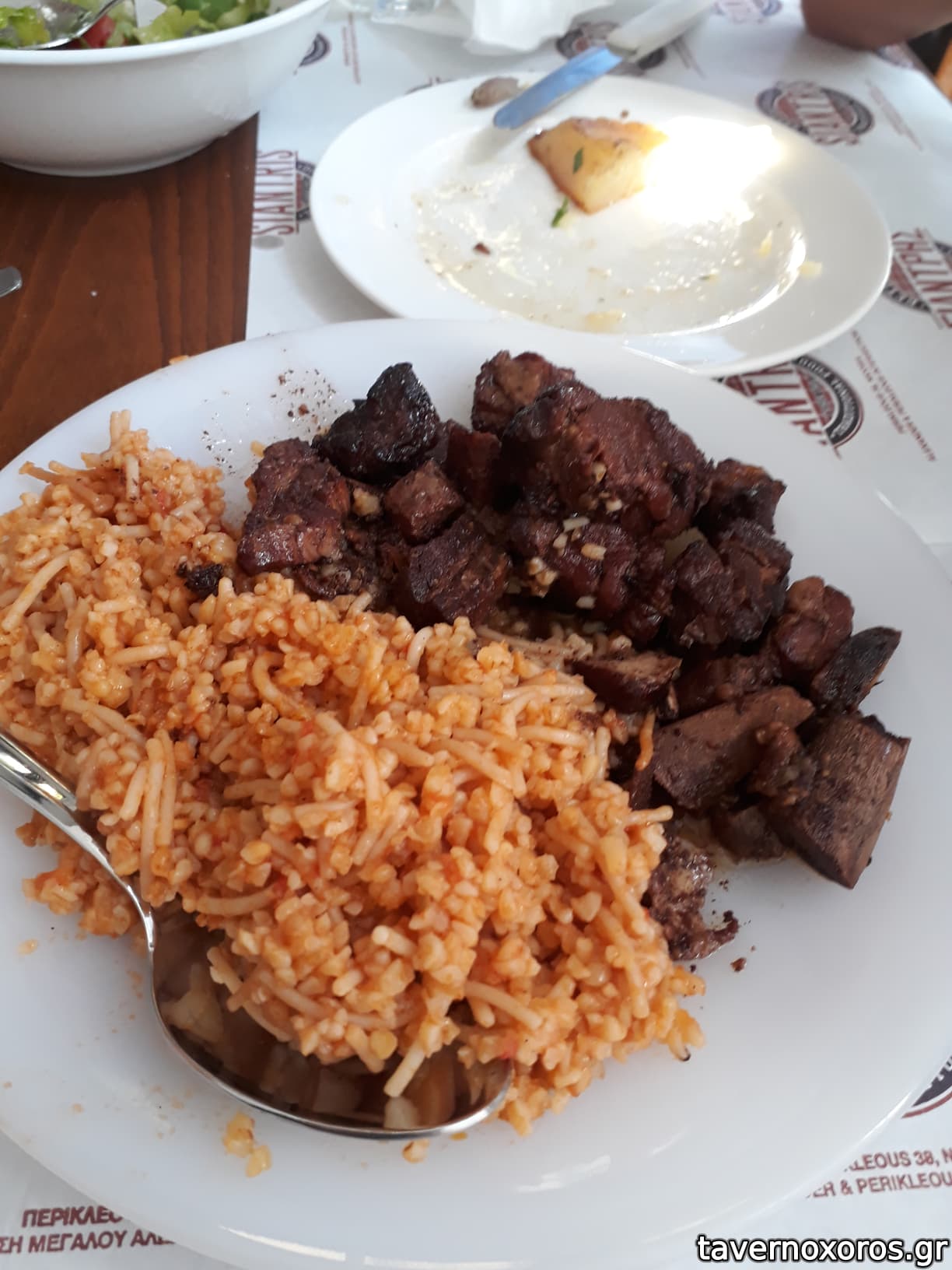 Αφέλια με πουργούρι (κυπριακή σπεσιαλιτέ, χοιρινό, νόστιμο το κρέας αν και μου φάνηκε λίγο στεγνό. Το πουργούρι ή το κριθαράκι που το συνοδεύει exetericus!)