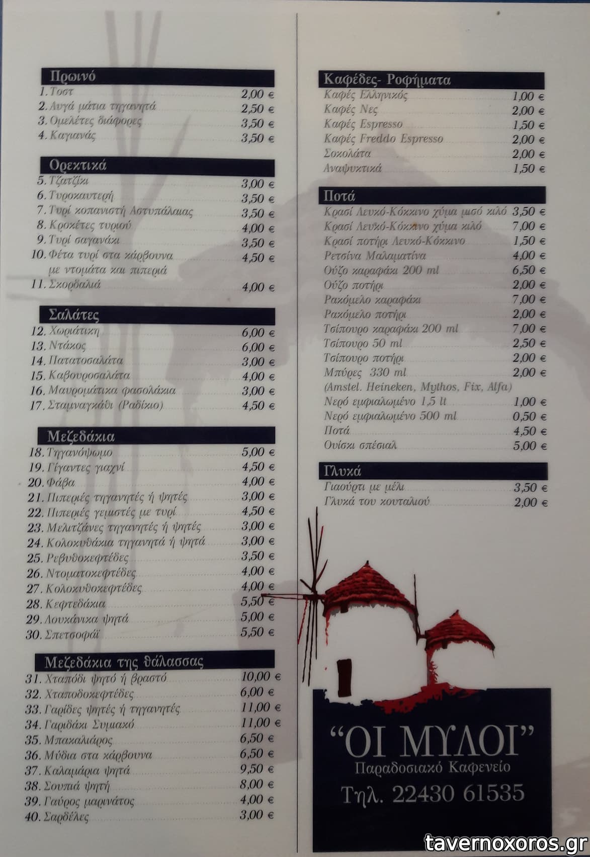 Δοκιμάστηκε τυρί κοπανιστή Αστυπάλαιας (κακό, σαν αλμυρό ροκφόρ), φάβα (καλή), σαρδέλες παστές (οκ), κολοκυθοκεφτέδες (μέτριοι προς κακοί), λουκάνικο χωριάτικο (καλό) και μύδια στα κάρβουνα (ιδιαίτερα). Αυτά με ένα εμφιαλωμένο νερό και ένα τσίπουρο 40.